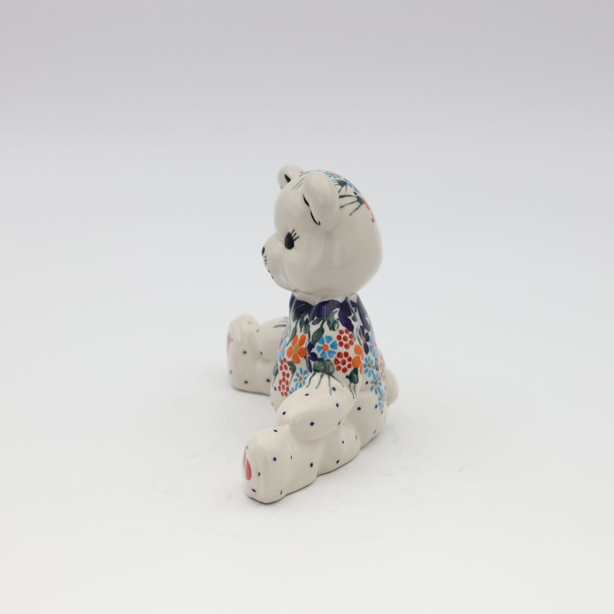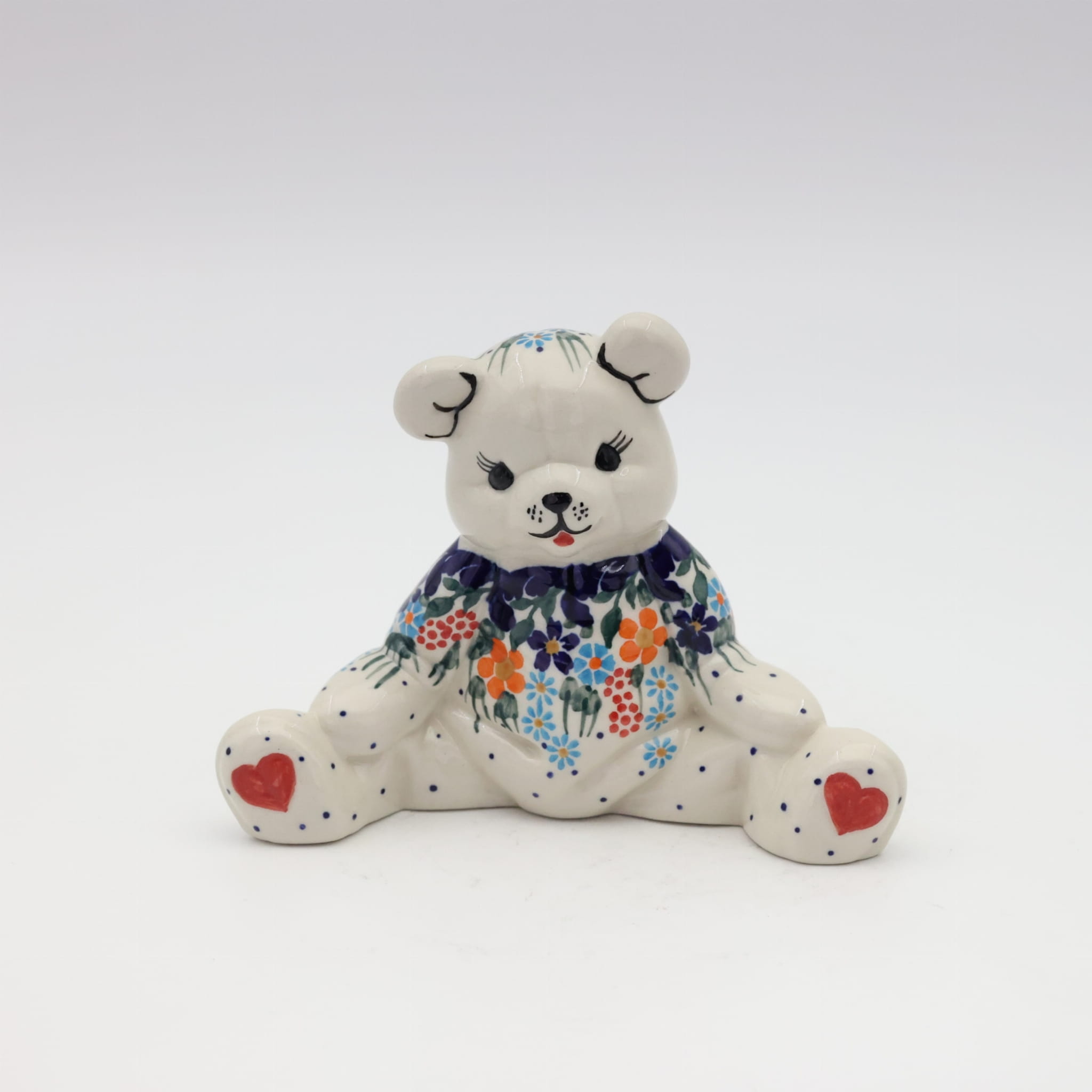 Figurka ceramiczna miś wykonana z oryginalnej ceramiki bolesławieckiej to wyjątkowe połączenie tradycyjnego rzemiosła i uroku ręcznie tworzonego przedmiotu. Każdy egzemplarz powstaje w lokalnych pracowniach w Bolesławcu, gdzie od pokoleń pielęgnuje się sztukę ceramiki użytkowej i dekoracyjnej. Misiek zdobiony jest charakterystycznym dla regionu, ręcznie malowanym wzorem, który sprawia, że każda figurka jest unikatowa i niepowtarzalna. Idealnie nadaje się jako ozdoba do pokoju dziecka, uroczy akcent na półkę w salonie lub prezent dla kogoś bliskiego, kto ceni polskie rękodzieło. Tradycyjna technika szkliwienia nadaje figurce połysk i chroni ją przed zarysowaniami, co sprawia, że zachowuje swoje piękno przez długi czas. Figurka dostępna jest w różnych wzorach i może delikatnie różnić się od tej przedstawionej na zdjęciu, co świadczy o jej autentyczności i ręcznym wykonaniu.