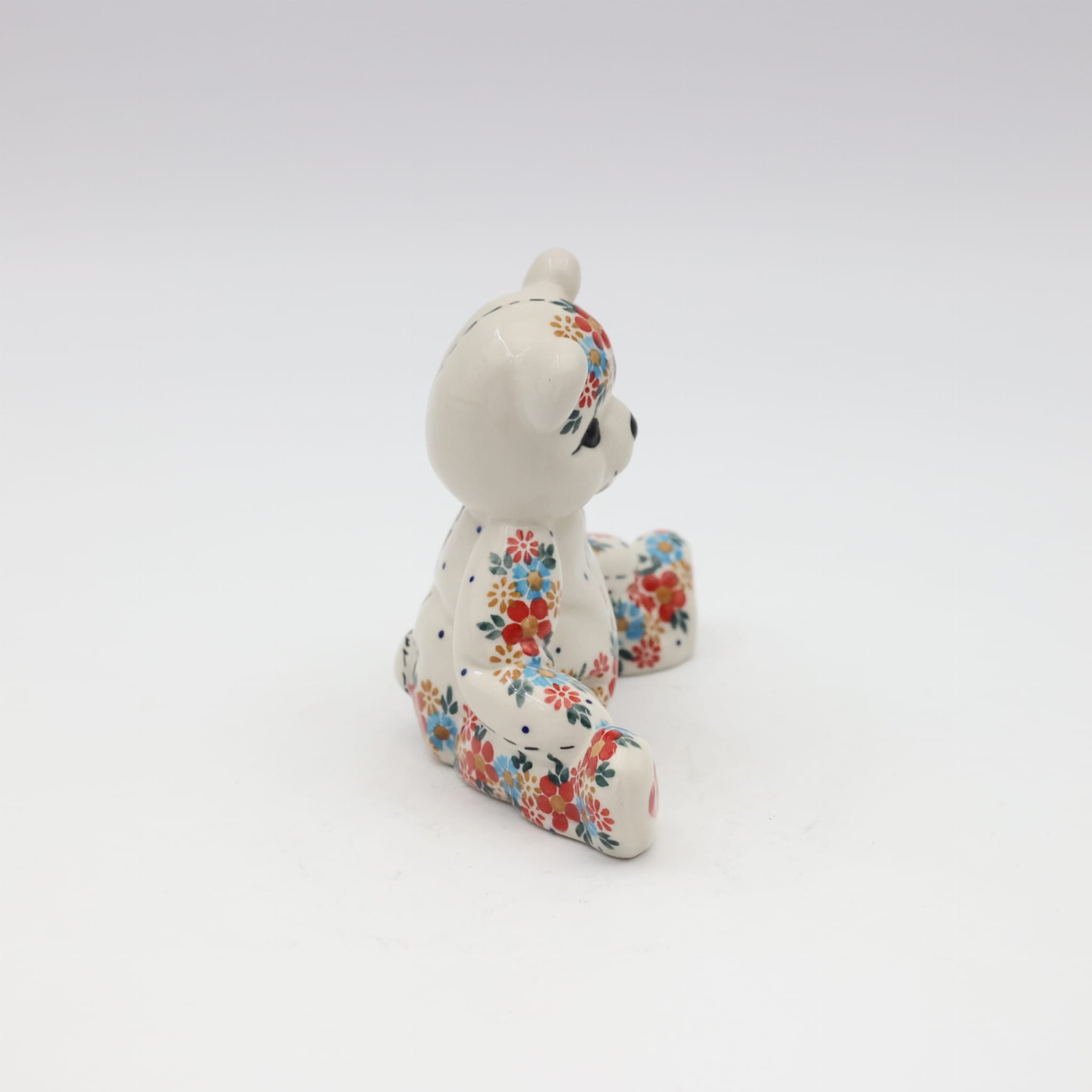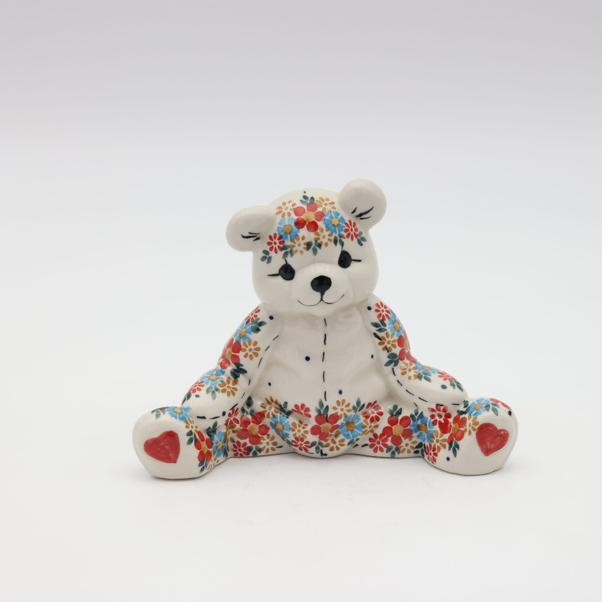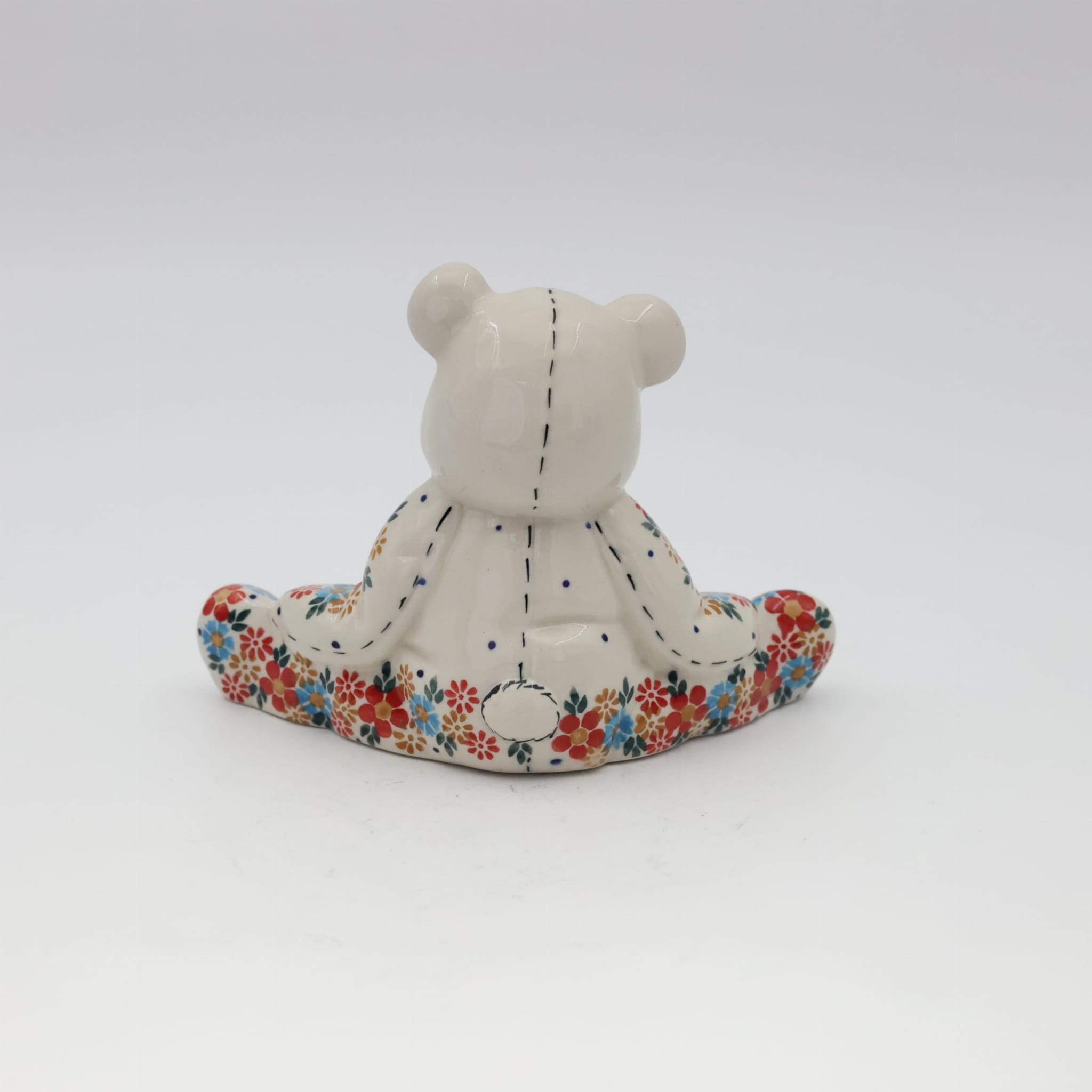 Figurka ceramiczna miś wykonana z oryginalnej ceramiki bolesławieckiej to wyjątkowe połączenie tradycyjnego rzemiosła i uroku ręcznie tworzonego przedmiotu. Każdy egzemplarz powstaje w lokalnych pracowniach w Bolesławcu, gdzie od pokoleń pielęgnuje się sztukę ceramiki użytkowej i dekoracyjnej. Misiek zdobiony jest charakterystycznym dla regionu, ręcznie malowanym wzorem, który sprawia, że każda figurka jest unikatowa i niepowtarzalna. Idealnie nadaje się jako ozdoba do pokoju dziecka, uroczy akcent na półkę w salonie lub prezent dla kogoś bliskiego, kto ceni polskie rękodzieło. Tradycyjna technika szkliwienia nadaje figurce połysk i chroni ją przed zarysowaniami, co sprawia, że zachowuje swoje piękno przez długi czas. Figurka dostępna jest w różnych wzorach i może delikatnie różnić się od tej przedstawionej na zdjęciu, co świadczy o jej autentyczności i ręcznym wykonaniu.