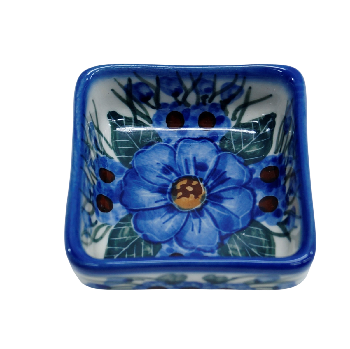 Oryginalny produkt ceramiki bolesławieckiej - miseczka kwadratowa na sos 1, o pojemności 35 ml, idealna do podawania i przechowywania wszelkich rodzajów sosów (sos czosnkowy, ziołowy, majonez czy ketchup).