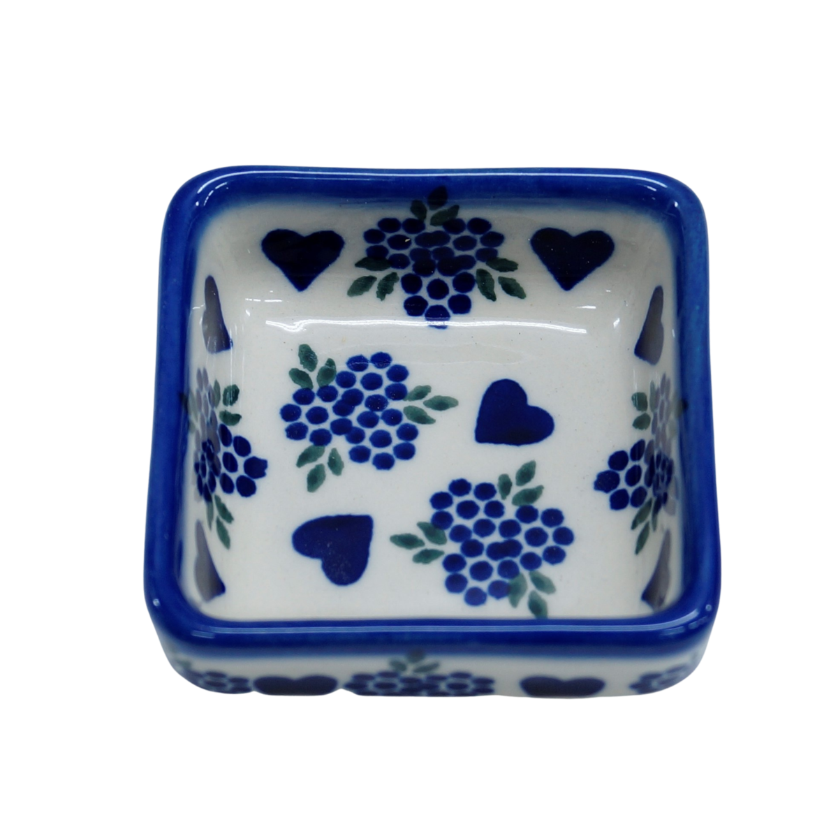 Oryginalny produkt ceramiki bolesławieckiej - miseczka kwadratowa na sos 1, o pojemności 35 ml, idealna do podawania i przechowywania wszelkich rodzajów sosów (sos czosnkowy, ziołowy, majonez czy ketchup).