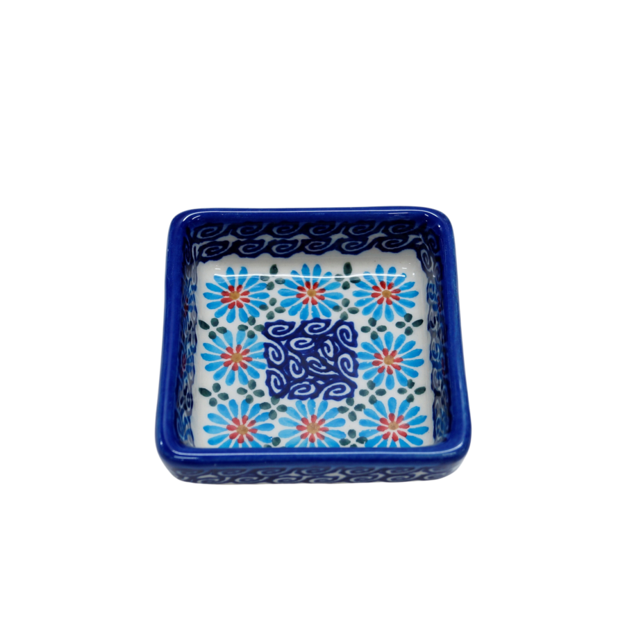 Oryginalny produkt ceramiki bolesławieckiej - miseczka kwadratowa na sos 2, o pojemności 75 ml, , idealna do podawania i przechowywania wszelkich rodzajów sosów (sos czosnkowy, ziołowy, majonez czy ketchup).