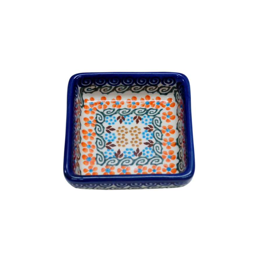 Oryginalny produkt ceramiki bolesławieckiej - miseczka kwadratowa na sos 2, o pojemności 75 ml, , idealna do podawania i przechowywania wszelkich rodzajów sosów (sos czosnkowy, ziołowy, majonez czy ketchup).