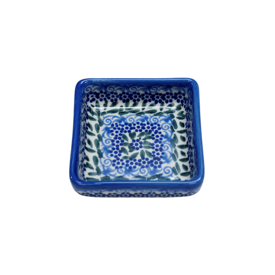 Oryginalny produkt ceramiki bolesławieckiej - miseczka kwadratowa na sos 2, o pojemności 75 ml, , idealna do podawania i przechowywania wszelkich rodzajów sosów (sos czosnkowy, ziołowy, majonez czy ketchup).