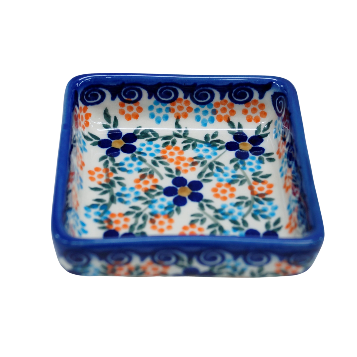 Oryginalny produkt ceramiki bolesławieckiej - miseczka kwadratowa na sos 2, o pojemności 75 ml, , idealna do podawania i przechowywania wszelkich rodzajów sosów (sos czosnkowy, ziołowy, majonez czy ketchup).