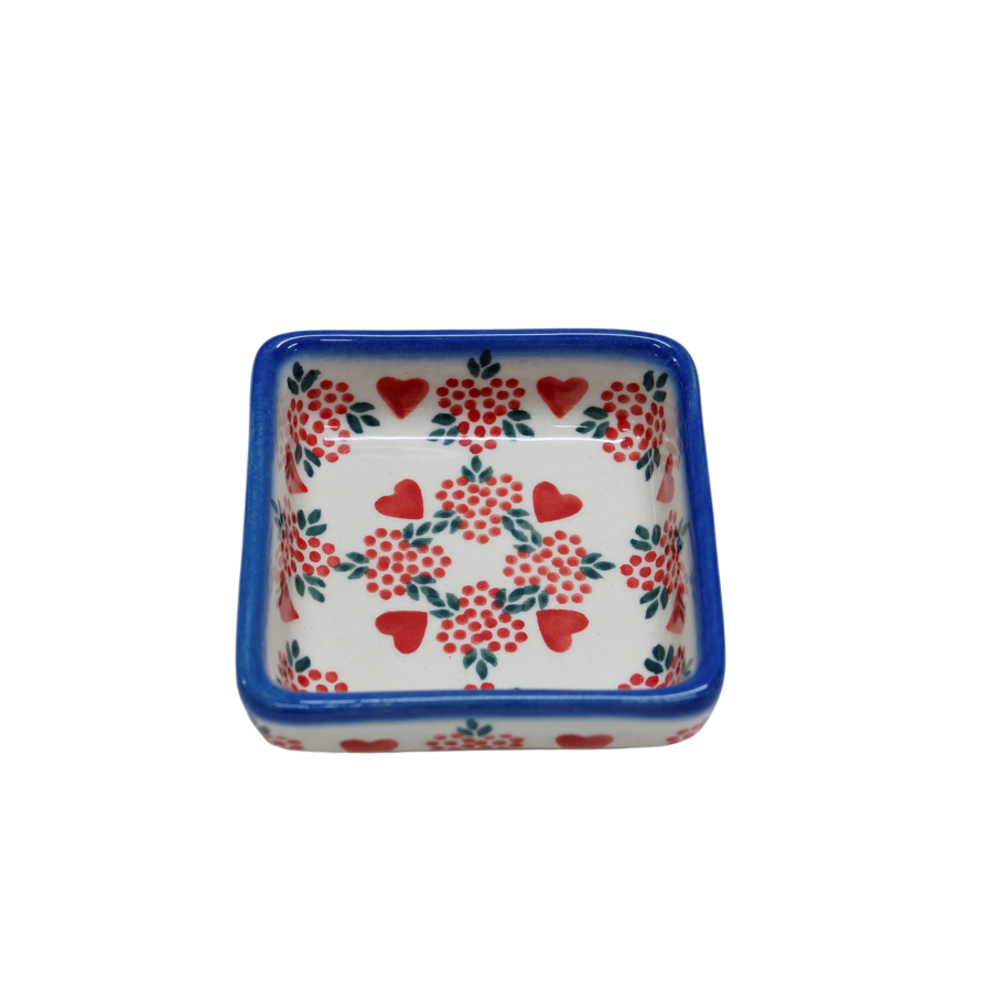 Oryginalny produkt ceramiki bolesławieckiej - miseczka kwadratowa na sos 2, o pojemności 75 ml, , idealna do podawania i przechowywania wszelkich rodzajów sosów (sos czosnkowy, ziołowy, majonez czy ketchup).