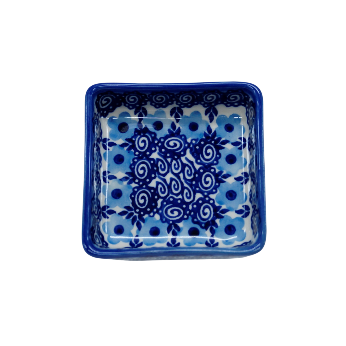 Oryginalny produkt ceramiki bolesławieckiej - miseczka kwadratowa na sos 2, o pojemności 75 ml, , idealna do podawania i przechowywania wszelkich rodzajów sosów (sos czosnkowy, ziołowy, majonez czy ketchup).