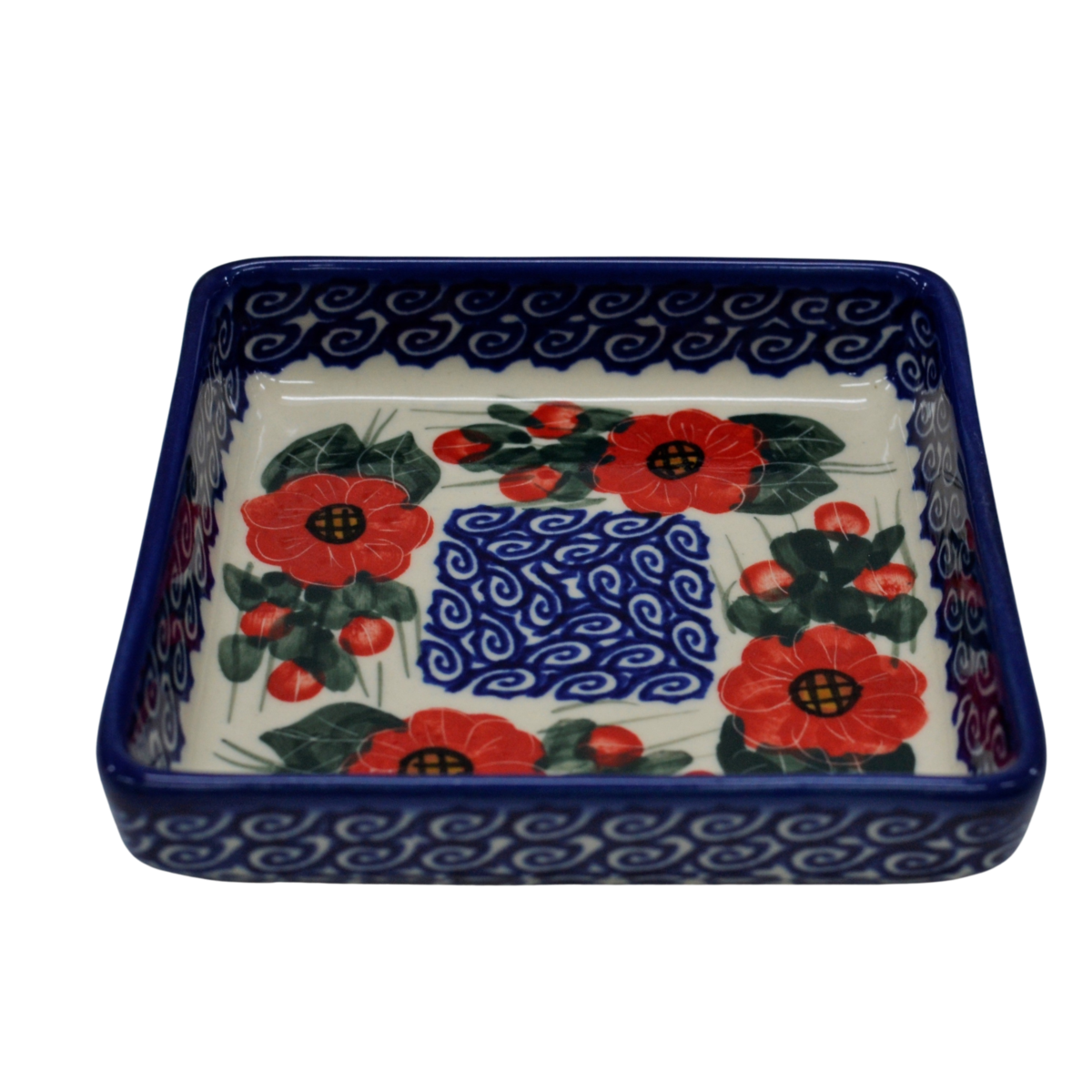 Oryginalny produkt ceramiki bolesławieckiej - miseczka kwadratowa na sos 3, o pojemności 150 ml, , idealna do podawania i przechowywania wszelkich rodzajów sosów (sos czosnkowy, ziołowy, majonez czy ketchup).