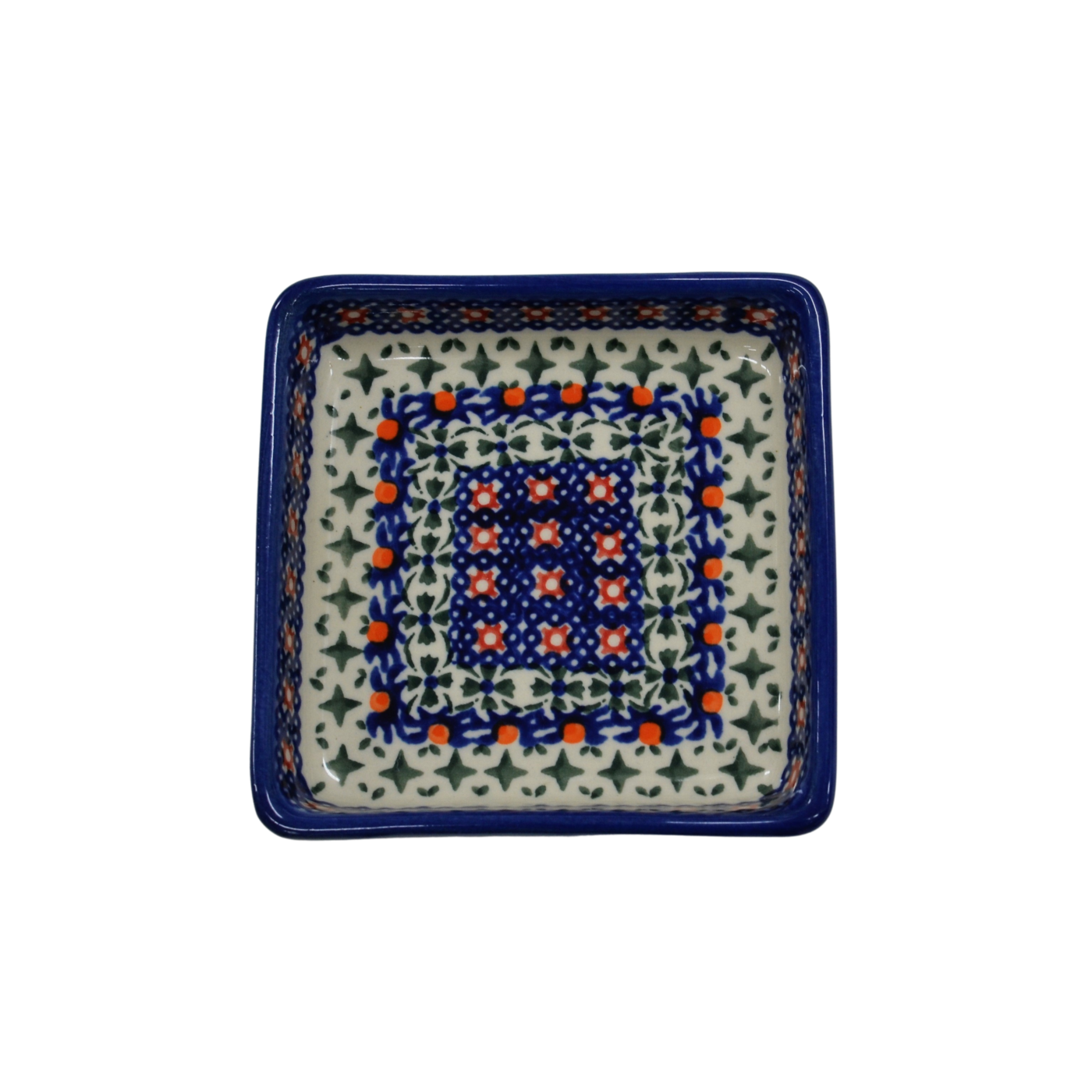 Oryginalny produkt ceramiki bolesławieckiej - miseczka kwadratowa na sos 3, o pojemności 150 ml, , idealna do podawania i przechowywania wszelkich rodzajów sosów (sos czosnkowy, ziołowy, majonez czy ketchup).