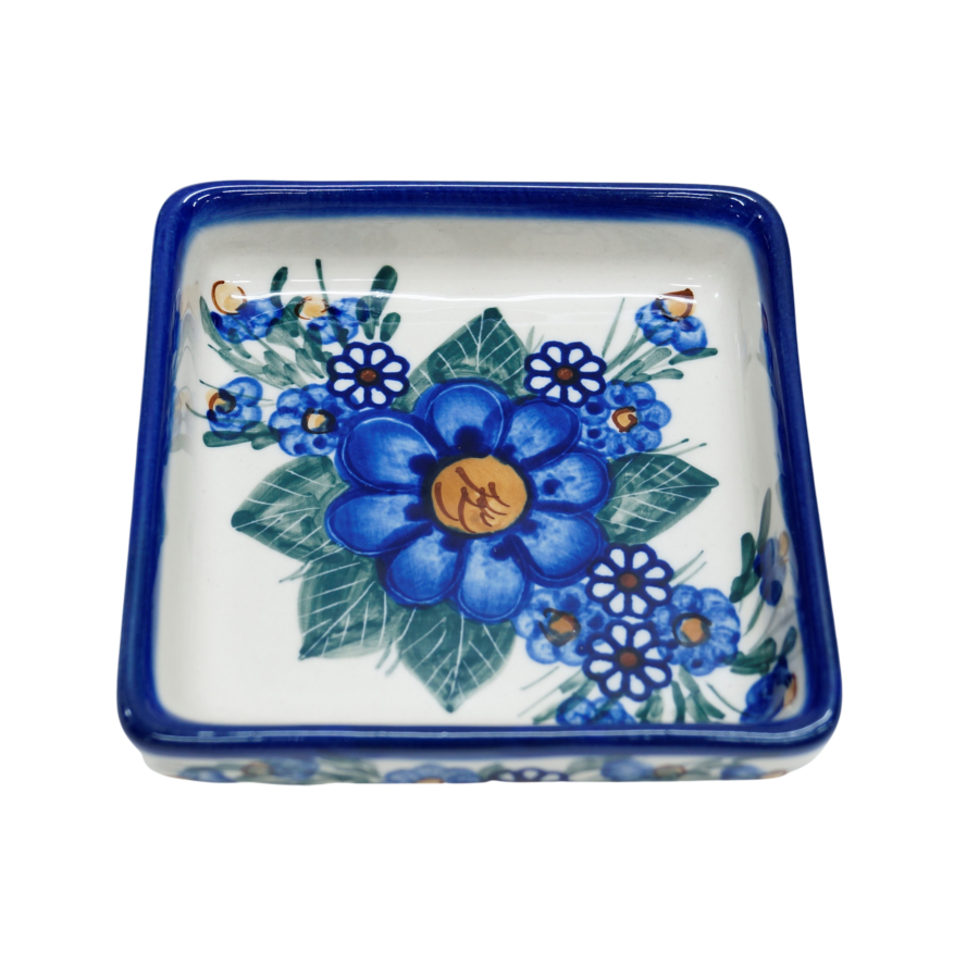 Oryginalny produkt ceramiki bolesławieckiej - miseczka kwadratowa na sos 3, o pojemności 150 ml, , idealna do podawania i przechowywania wszelkich rodzajów sosów (sos czosnkowy, ziołowy, majonez czy ketchup).