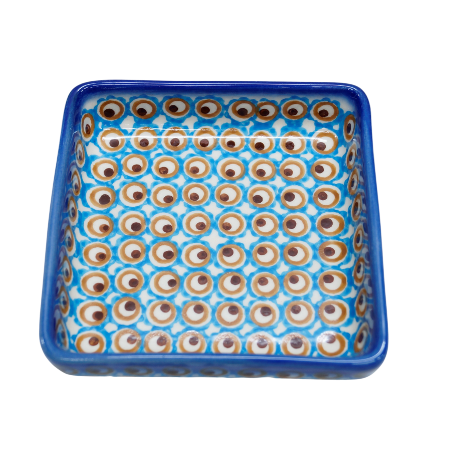 Oryginalny produkt ceramiki bolesławieckiej - miseczka kwadratowa na sos 3, o pojemności 150 ml, , idealna do podawania i przechowywania wszelkich rodzajów sosów (sos czosnkowy, ziołowy, majonez czy ketchup).