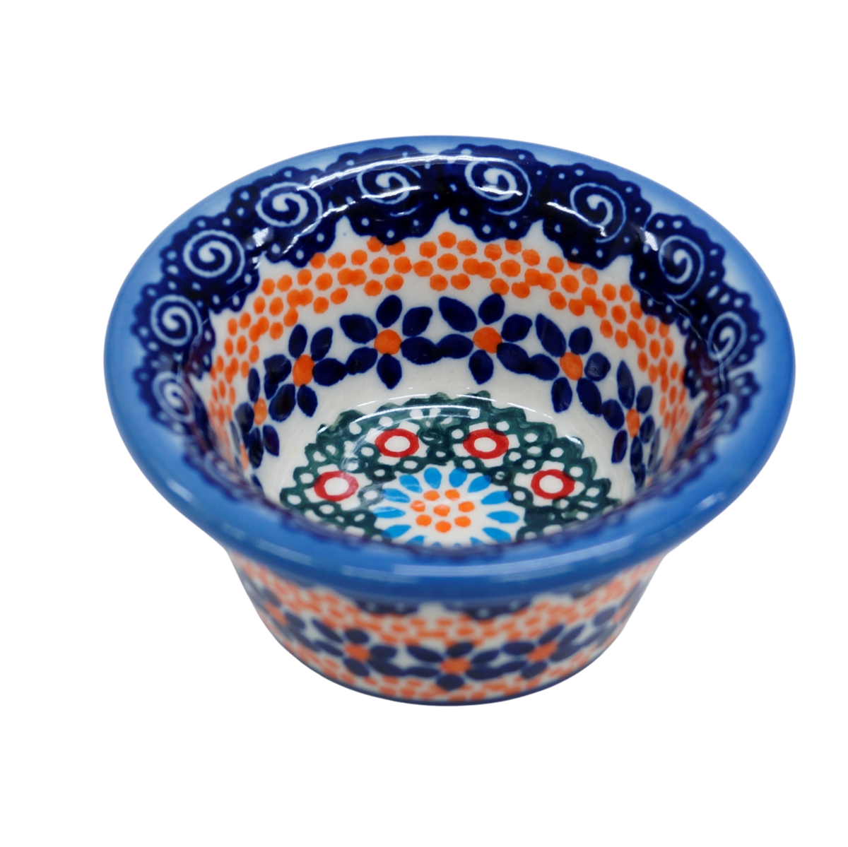 Oryginalny produkt ceramiki bolesławieckiej – miseczka na sos, idealna do podawania i przechowywania potraw, sosów i dipów. Niech Twoja potrawa będzie podana pięknie i smakuje wykwitnie dzięki artystycznym naczyniom ceramiki Bolesławieckiej z rodzinnej manufaktury, CERAMIKA ANDY.