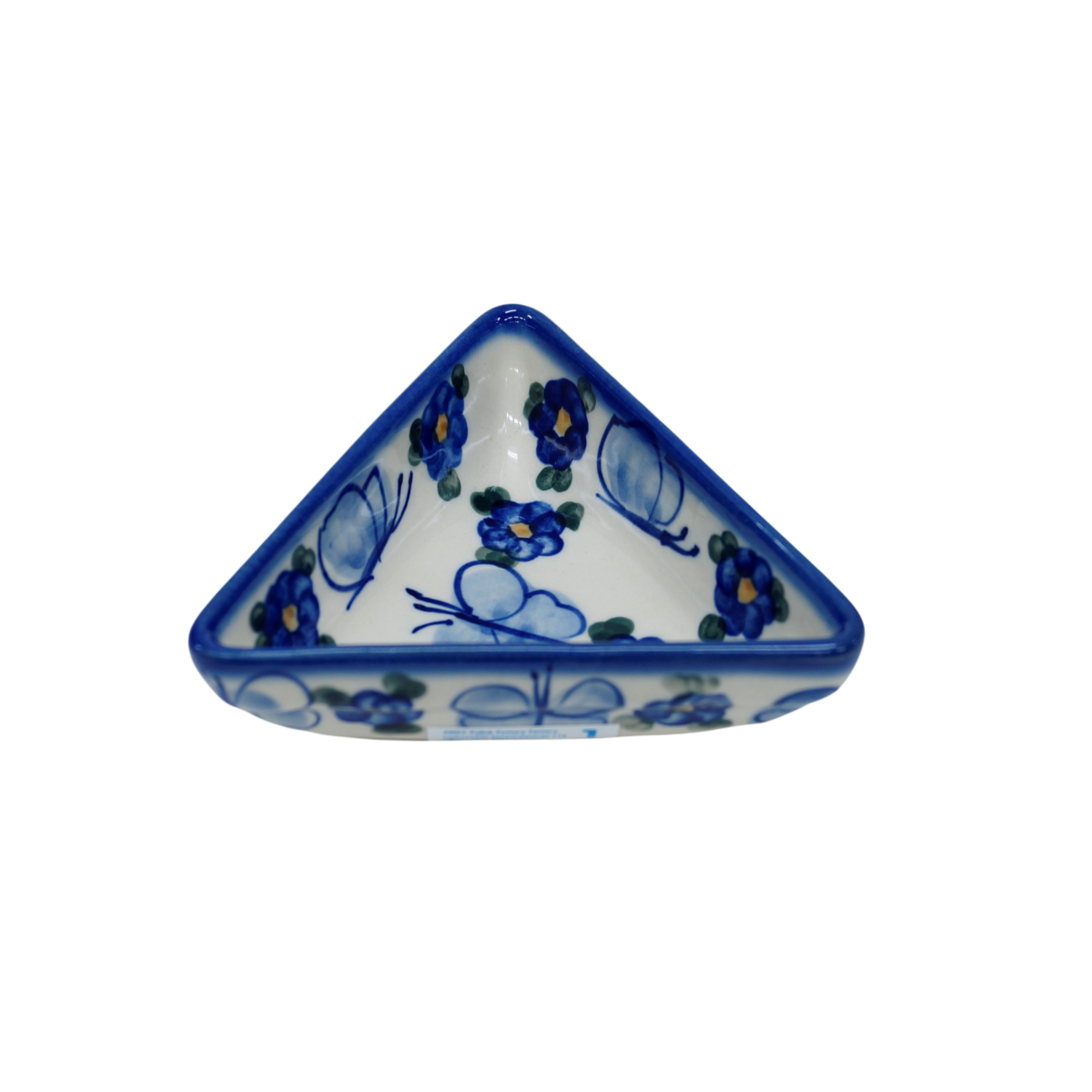 Oryginalny produkt ceramiki bolesławieckiej - miseczka trójkątna mała, idealna do podawania i przechowywania potraw. Niech Twoja potrawa będzie podana pięknie i smakuje wykwitnie dzięki artystycznym naczyniom ceramiki Bolesławieckiej z rodzinnej manufaktury, CERAMIKA ANDY.
