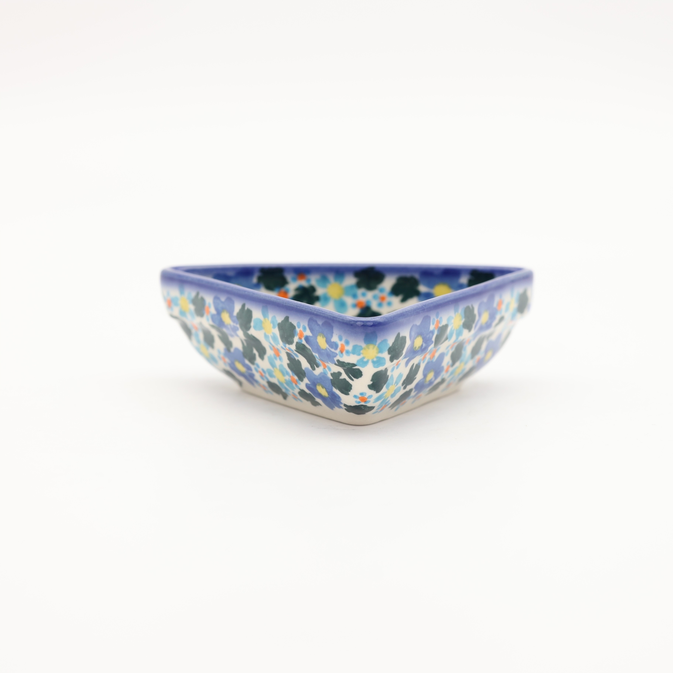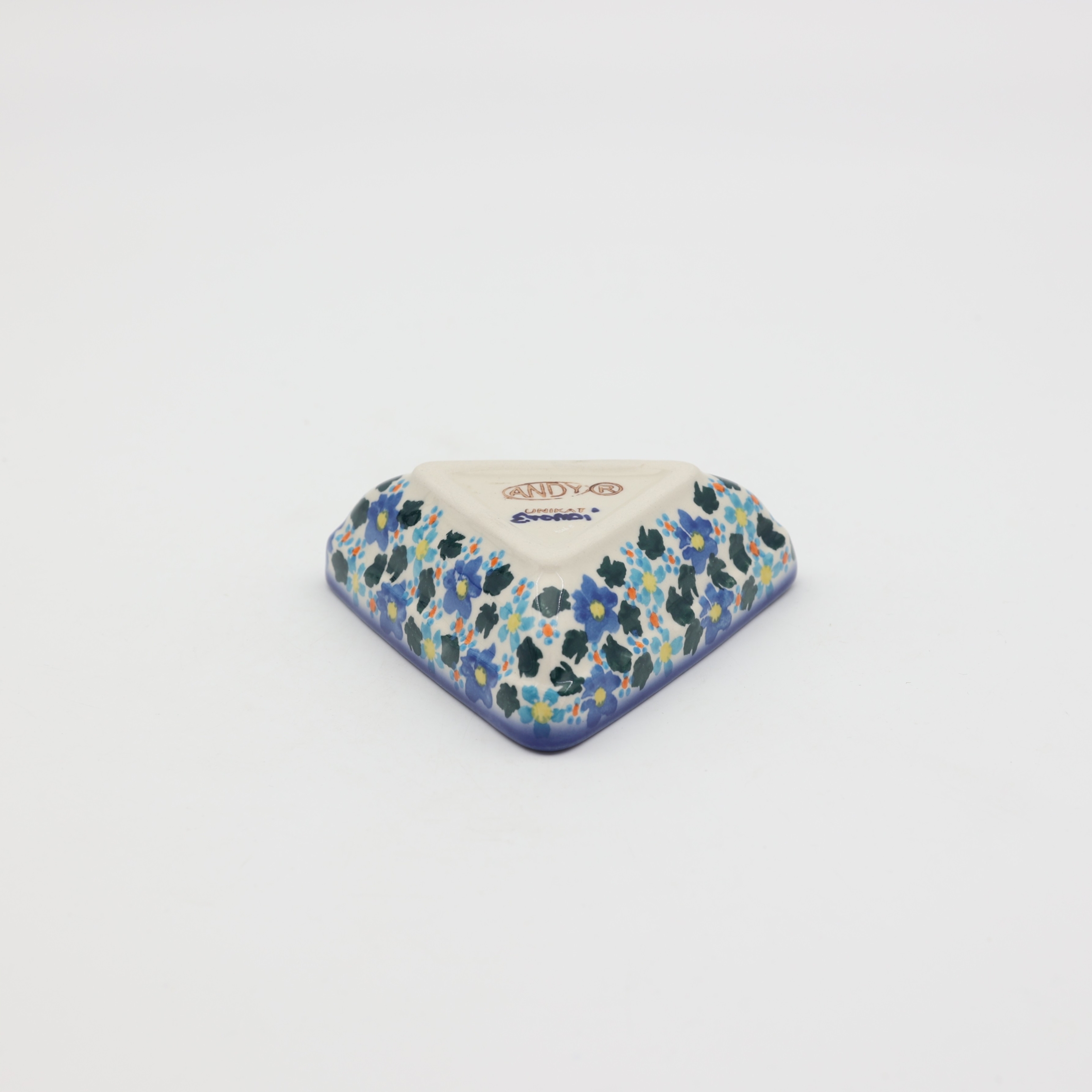 Oryginalny produkt ceramiki bolesławieckiej - miseczka trójkątna mała, idealna do podawania i przechowywania potraw. Niech Twoja potrawa będzie podana pięknie i smakuje wykwitnie dzięki artystycznym naczyniom ceramiki Bolesławieckiej z rodzinnej manufaktury, CERAMIKA ANDY.