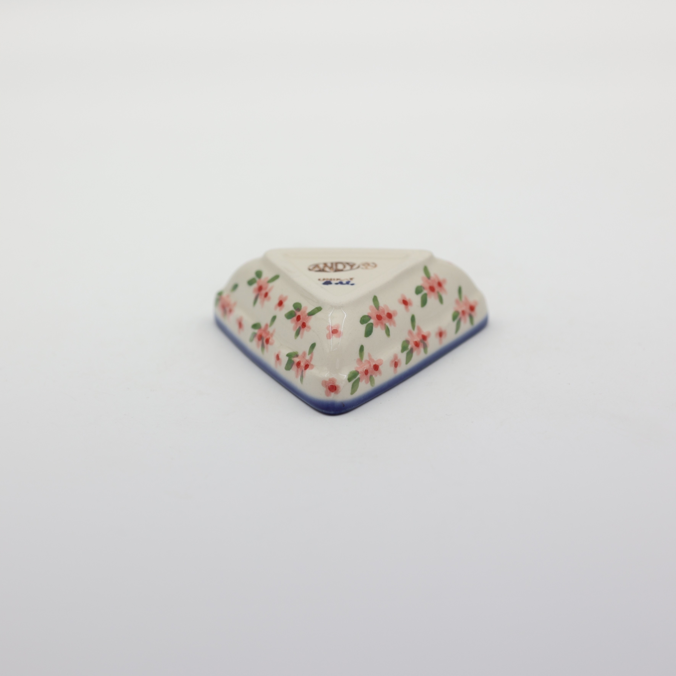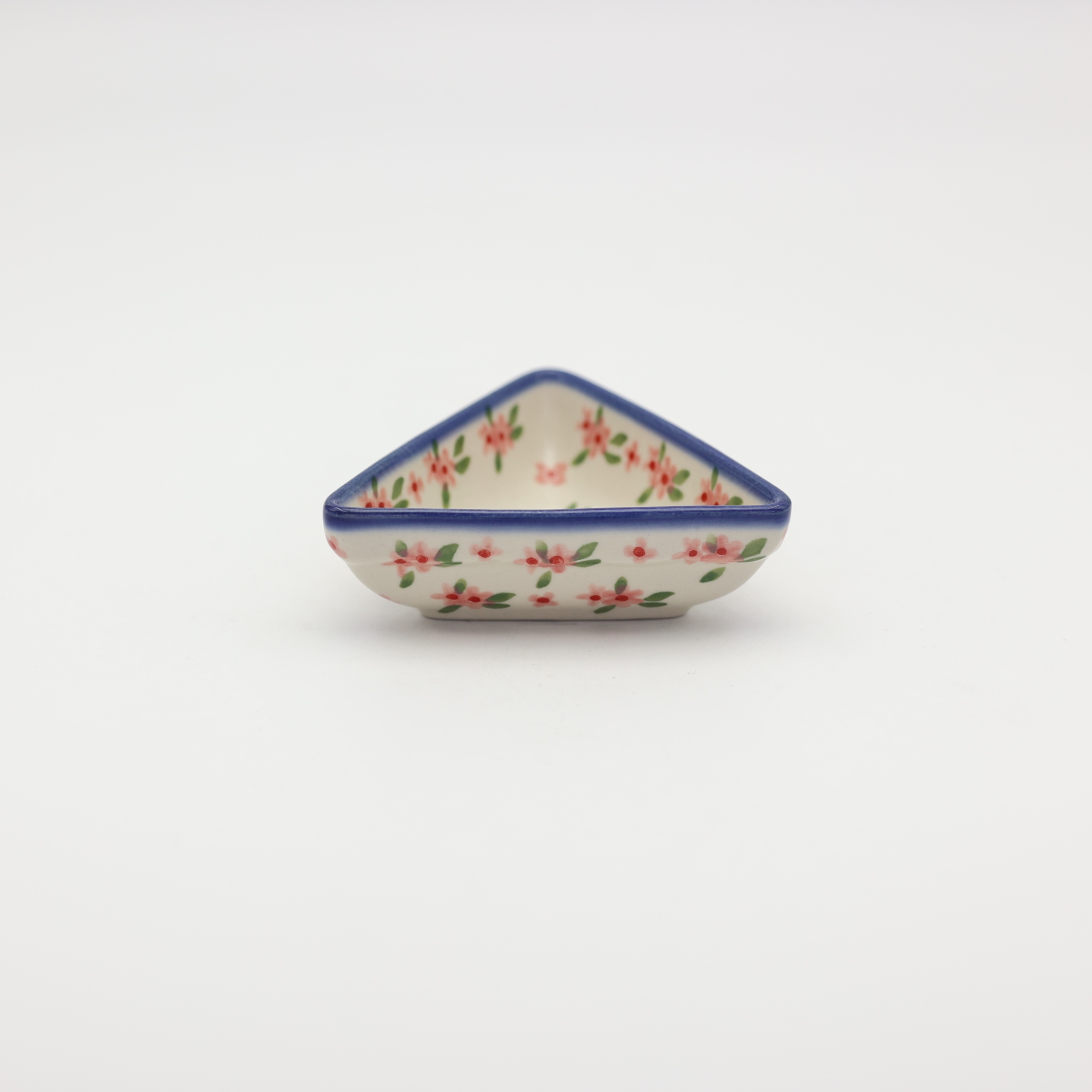 Oryginalny produkt ceramiki bolesławieckiej - miseczka trójkątna mała, idealna do podawania i przechowywania potraw. Niech Twoja potrawa będzie podana pięknie i smakuje wykwitnie dzięki artystycznym naczyniom ceramiki Bolesławieckiej z rodzinnej manufaktury, CERAMIKA ANDY.