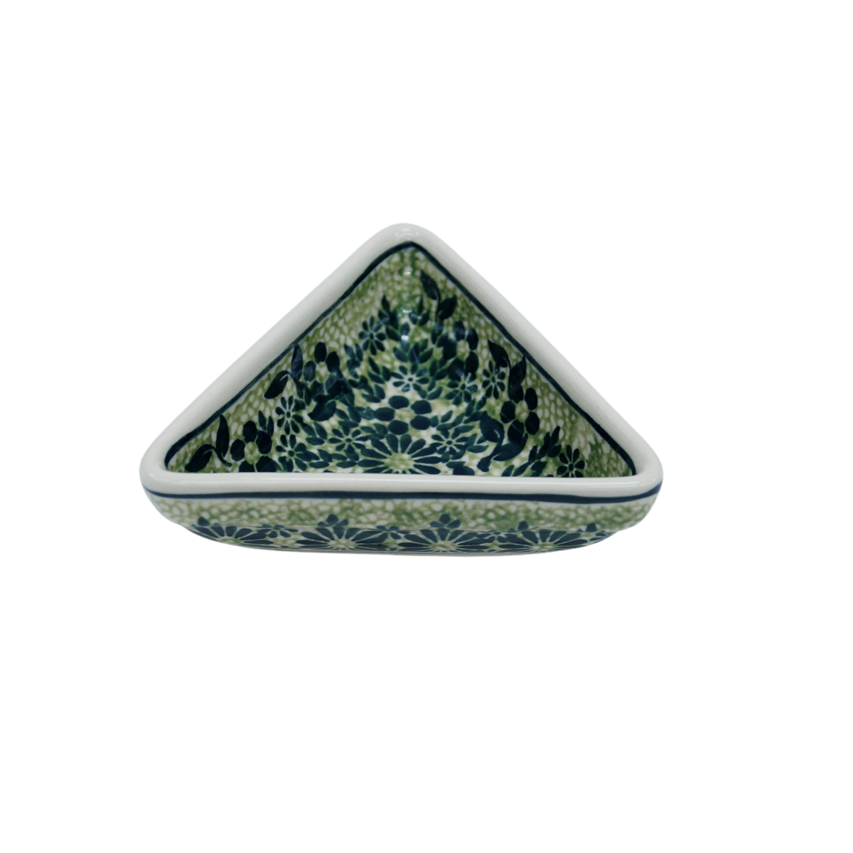 Oryginalny produkt ceramiki bolesławieckiej - miseczka trójkątna mała, idealna do podawania i przechowywania potraw. Niech Twoja potrawa będzie podana pięknie i smakuje wykwitnie dzięki artystycznym naczyniom ceramiki Bolesławieckiej z rodzinnej manufaktury, CERAMIKA ANDY.