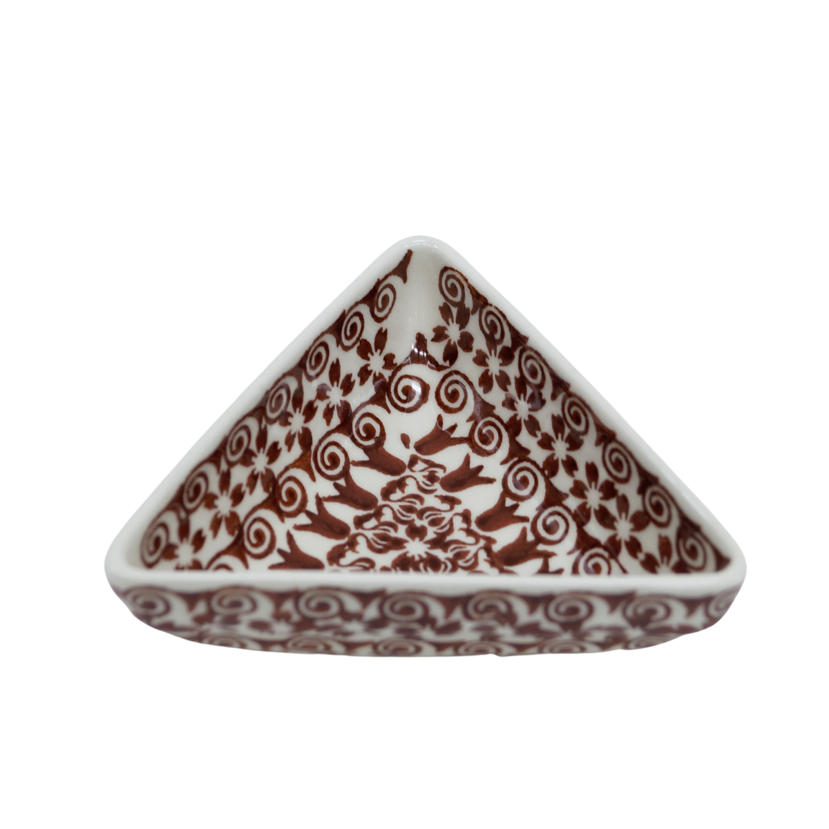 Oryginalny produkt ceramiki bolesławieckiej - miseczka trójkątna mała, idealna do podawania i przechowywania potraw. Niech Twoja potrawa będzie podana pięknie i smakuje wykwitnie dzięki artystycznym naczyniom ceramiki Bolesławieckiej z rodzinnej manufaktury, CERAMIKA ANDY.