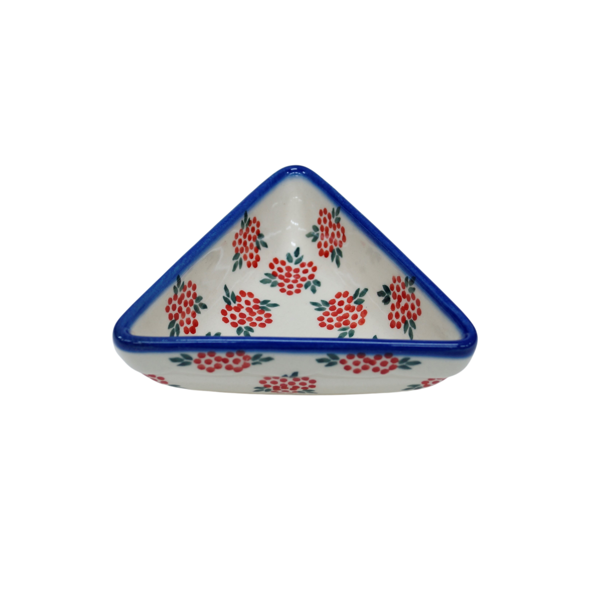 Oryginalny produkt ceramiki bolesławieckiej - miseczka trójkątna mała, idealna do podawania i przechowywania potraw. Niech Twoja potrawa będzie podana pięknie i smakuje wykwitnie dzięki artystycznym naczyniom ceramiki Bolesławieckiej z rodzinnej manufaktury, CERAMIKA ANDY.