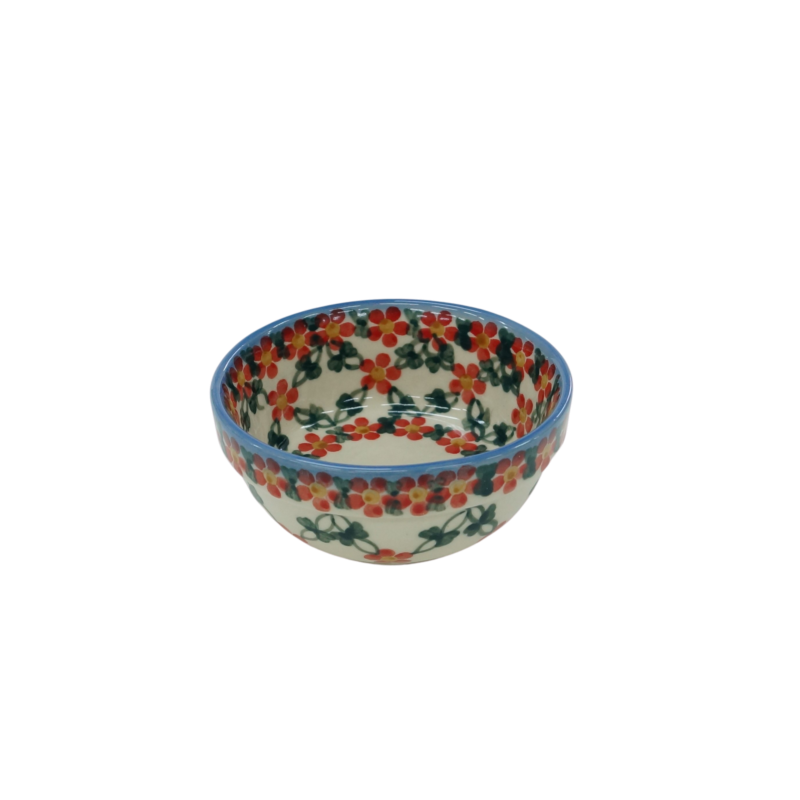 Oryginalny produkt ceramiki bolesławieckiej - miska, bulionówka, flaczarka o średnicy 11 cm z rantem, idealna do podawania i przechowywania potraw. Niech Twoja potrawa będzie podana pięknie i smakuje wykwitnie dzięki artystycznym naczyniom ceramiki Bolesławieckiej z rodzinnej manufaktury, CERAMIKA ANDY.