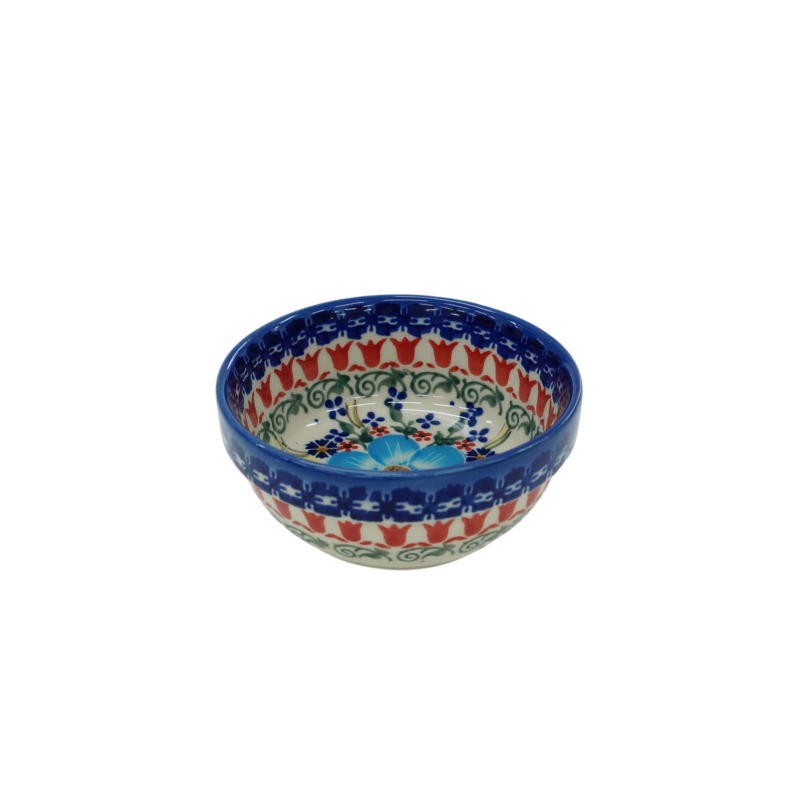 Oryginalny produkt ceramiki bolesławieckiej - miska, bulionówka, flaczarka o średnicy 11 cm z rantem, idealna do podawania i przechowywania potraw. Niech Twoja potrawa będzie podana pięknie i smakuje wykwitnie dzięki artystycznym naczyniom ceramiki Bolesławieckiej z rodzinnej manufaktury, CERAMIKA ANDY.