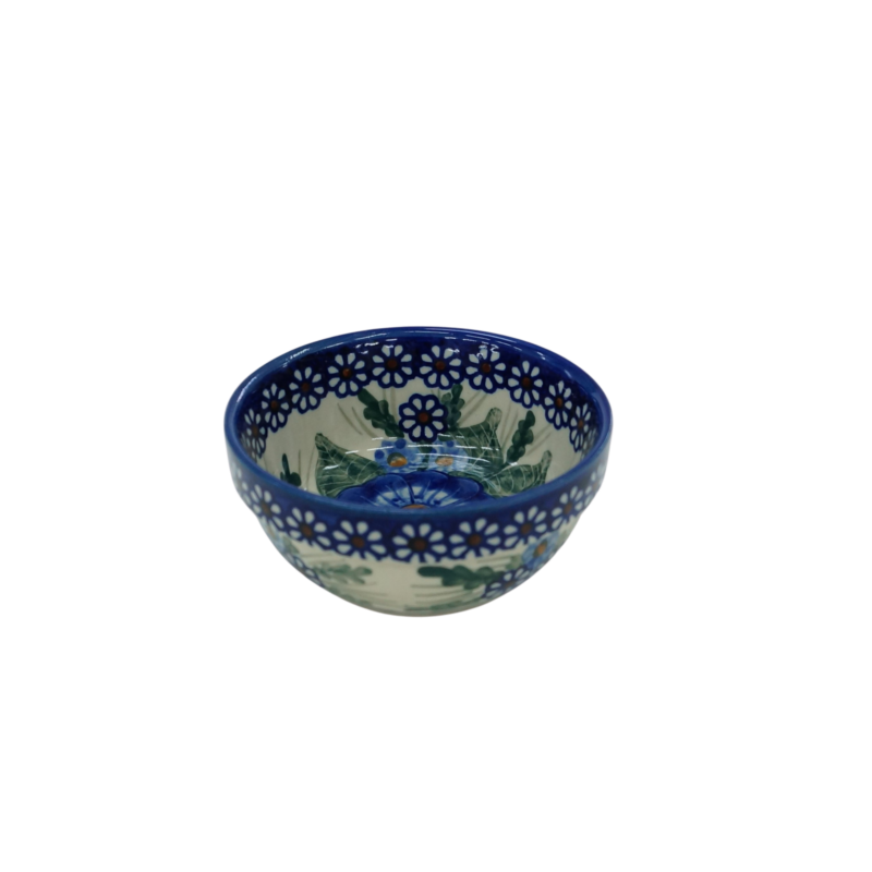 Oryginalny produkt ceramiki bolesławieckiej - miska, bulionówka, flaczarka o średnicy 11 cm z rantem, idealna do podawania i przechowywania potraw. Niech Twoja potrawa będzie podana pięknie i smakuje wykwitnie dzięki artystycznym naczyniom ceramiki Bolesławieckiej z rodzinnej manufaktury, CERAMIKA ANDY.