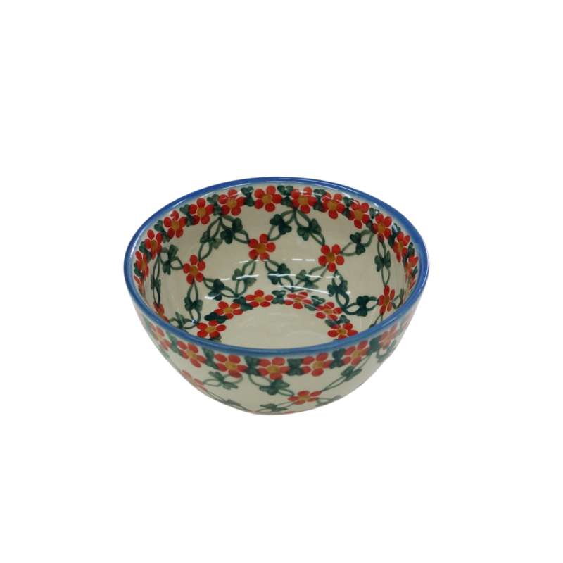 Oryginalny produkt ceramiki bolesławieckiej - miska, bulionówka, flaczarka o średnicy 11 cm z rantem, idealna do podawania i przechowywania potraw. Niech Twoja potrawa będzie podana pięknie i smakuje wykwitnie dzięki artystycznym naczyniom ceramiki Bolesławieckiej z rodzinnej manufaktury, CERAMIKA ANDY.