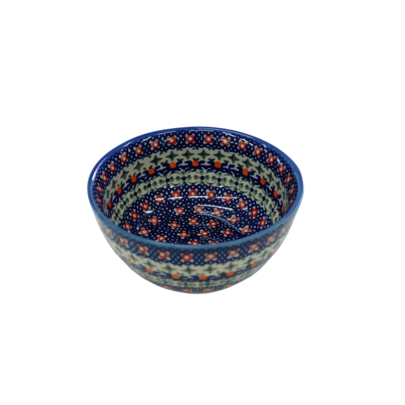 Oryginalny produkt ceramiki bolesławieckiej - miska, bulionówka, flaczarka o średnicy 11 cm z rantem, idealna do podawania i przechowywania potraw. Niech Twoja potrawa będzie podana pięknie i smakuje wykwitnie dzięki artystycznym naczyniom ceramiki Bolesławieckiej z rodzinnej manufaktury, CERAMIKA ANDY.