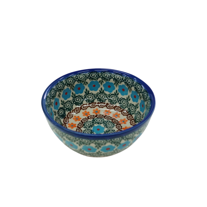 Oryginalny produkt ceramiki bolesławieckiej - miska, bulionówka, flaczarka o średnicy 11 cm z rantem, idealna do podawania i przechowywania potraw. Niech Twoja potrawa będzie podana pięknie i smakuje wykwitnie dzięki artystycznym naczyniom ceramiki Bolesławieckiej z rodzinnej manufaktury, CERAMIKA ANDY.