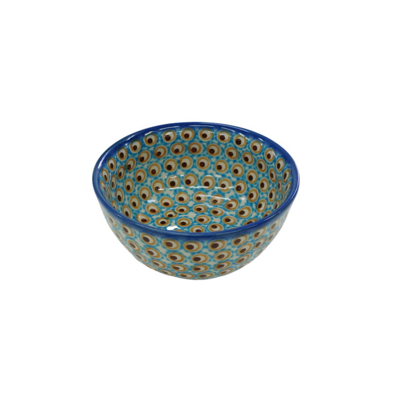 Oryginalny produkt ceramiki bolesławieckiej - miska, bulionówka, flaczarka o średnicy 11 cm z rantem, idealna do podawania i przechowywania potraw. Niech Twoja potrawa będzie podana pięknie i smakuje wykwitnie dzięki artystycznym naczyniom ceramiki Bolesławieckiej z rodzinnej manufaktury, CERAMIKA ANDY.