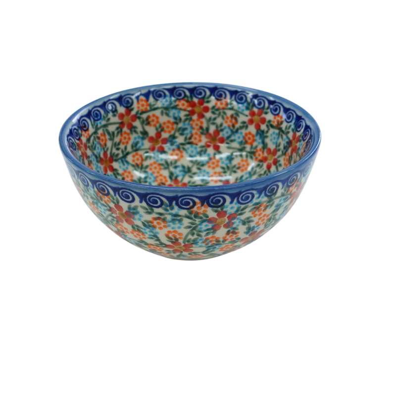 Oryginalny produkt ceramiki bolesławieckiej - miska, bulionówka, flaczarka o średnicy 15 cm z rantem, idealna do podawania i przechowywania potraw. Niech Twoja potrawa będzie podana pięknie i smakuje wykwitnie dzięki artystycznym naczyniom ceramiki Bolesławieckiej z rodzinnej manufaktury, CERAMIKA ANDY.