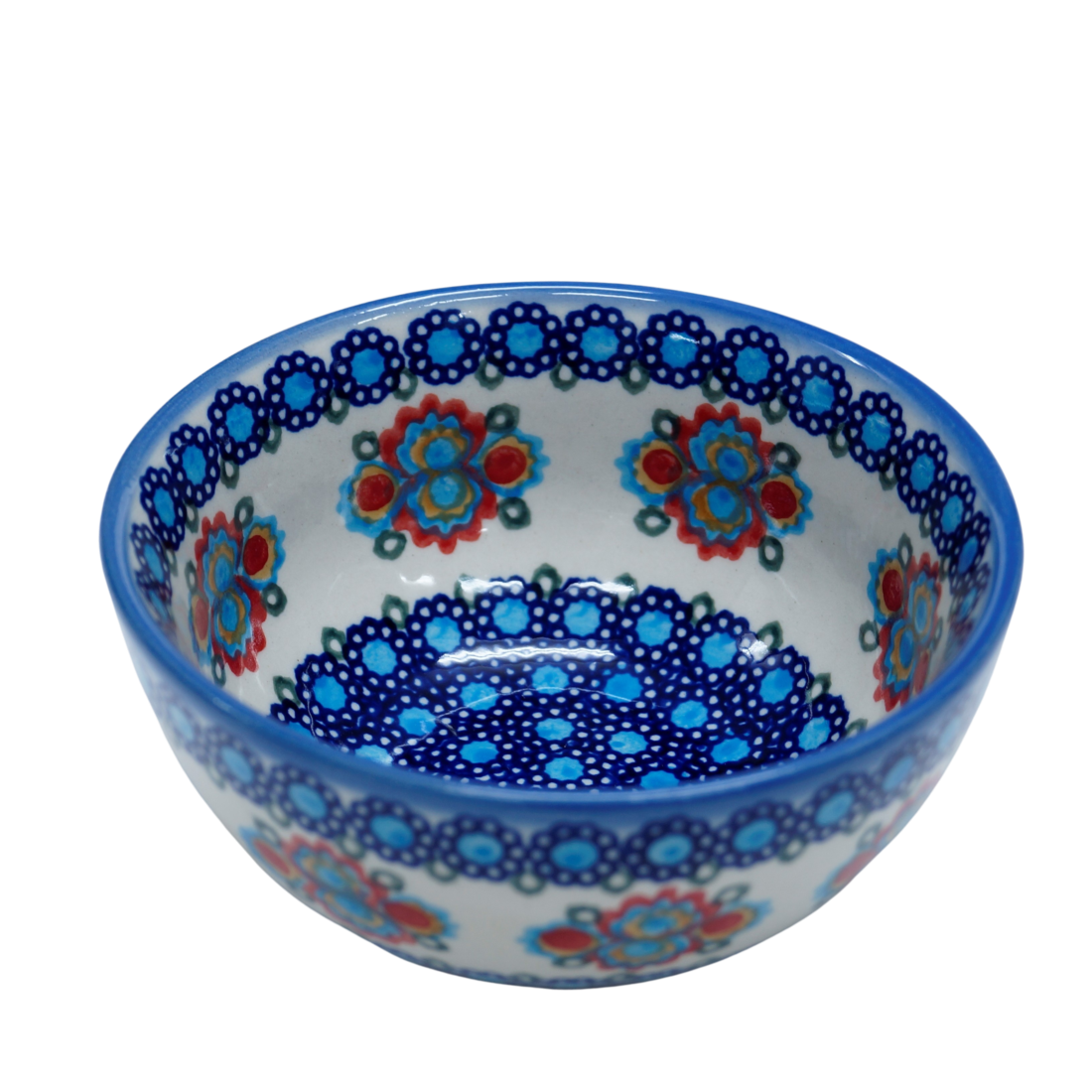 Oryginalny produkt ceramiki bolesławieckiej - miska, bulionówka, flaczarka, salaterka o średnicy 15 cm z rantem, idealna do podawania i przechowywania potraw. Niech Twoja potrawa będzie podana pięknie i smakuje wykwitnie dzięki artystycznym naczyniom ceramiki Bolesławieckiej z rodzinnej manufaktury, CERAMIKA ANDY.