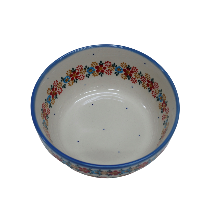 Oryginalny produkt ceramiki bolesławieckiej - miska, bulionówka, flaczarka o średnicy 17 cm z rantem, idealna do podawania i przechowywania potraw. Niech Twoja potrawa będzie podana pięknie i smakuje wykwitnie dzięki artystycznym naczyniom ceramiki Bolesławieckiej z rodzinnej manufaktury, CERAMIKA ANDY.