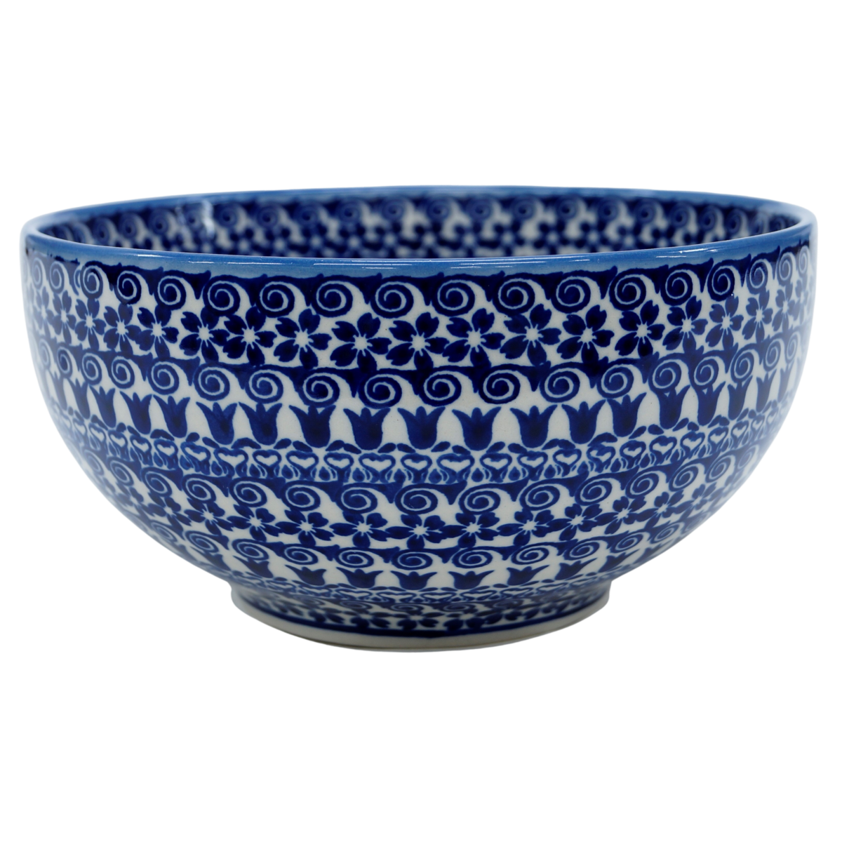 Oryginalny produkt ceramiki bolesławieckiej - ręcznie zdobiona miska ceramiczna 20 cm o średnicy zewnętrznej aż 21,5 cm, idealna do podawania i przechowywania potraw. Niech wszystkie potrawy i posiłki będą podane pięknie i smakują wykwitnie dzięki artystycznym naczyniom ceramiki Bolesławieckiej z rodzinnej manufaktury, CERAMIKA ANDY.
