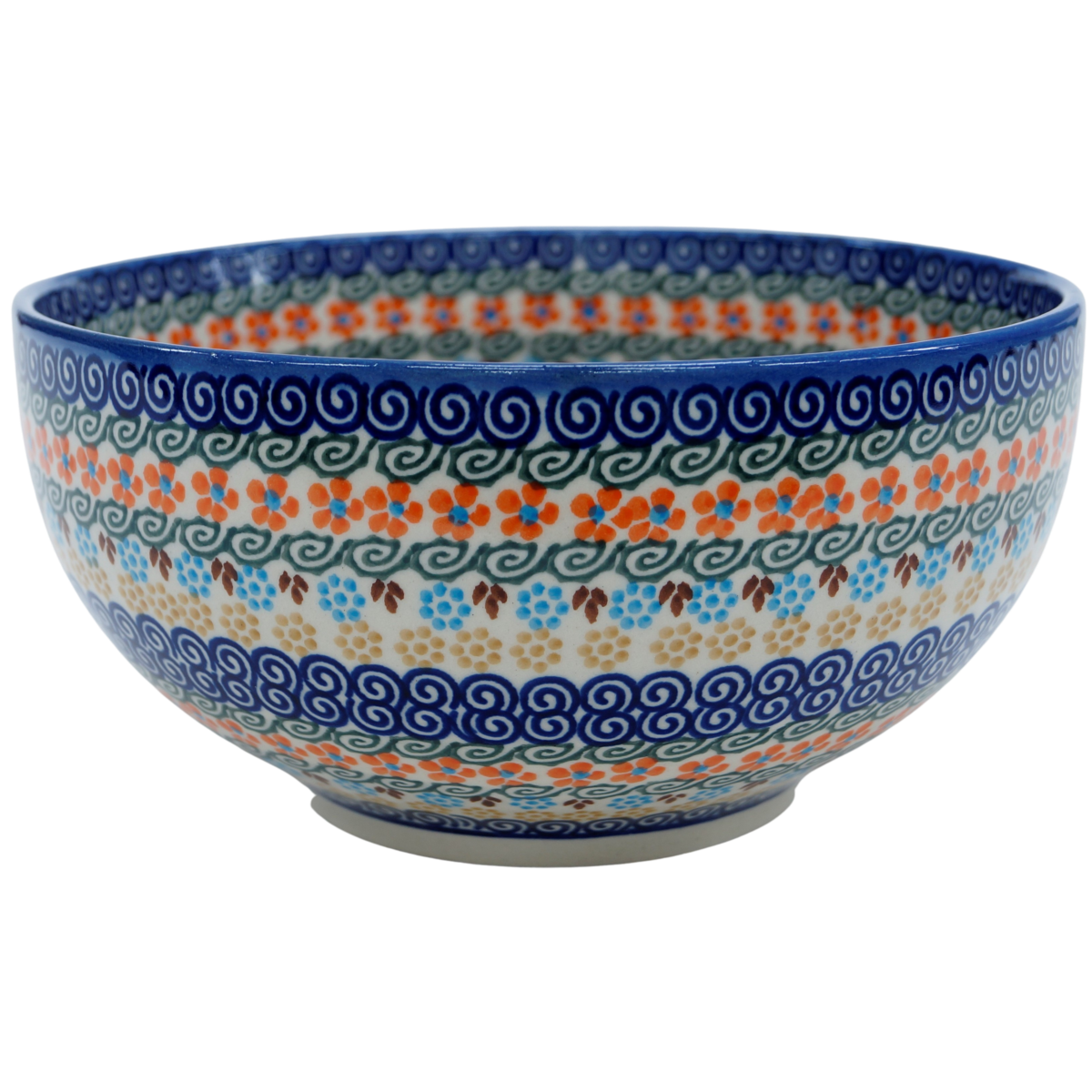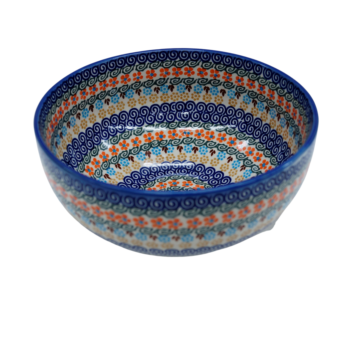 Oryginalny produkt ceramiki bolesławieckiej - ręcznie zdobiona miska ceramiczna 20 cm o średnicy zewnętrznej aż 21,5 cm, idealna do podawania i przechowywania potraw. Niech wszystkie potrawy i posiłki będą podane pięknie i smakują wykwitnie dzięki artystycznym naczyniom ceramiki Bolesławieckiej z rodzinnej manufaktury, CERAMIKA ANDY.