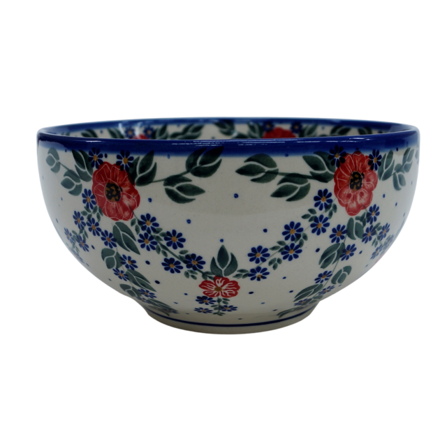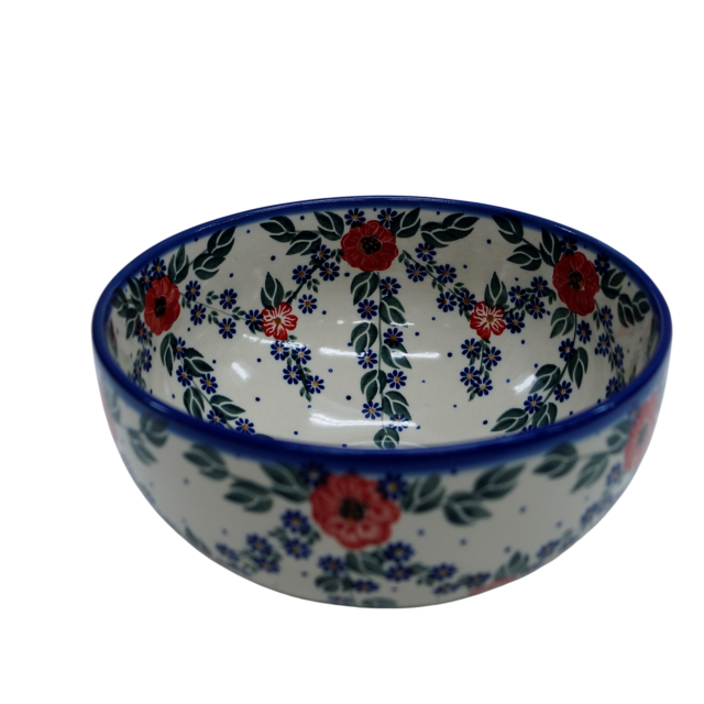 Oryginalny produkt ceramiki bolesławieckiej - ręcznie zdobiona miska ceramiczna 20 cm o średnicy zewnętrznej aż 21,5 cm, idealna do podawania i przechowywania potraw. Niech wszystkie potrawy i posiłki będą podane pięknie i smakują wykwitnie dzięki artystycznym naczyniom ceramiki Bolesławieckiej z rodzinnej manufaktury, CERAMIKA ANDY.