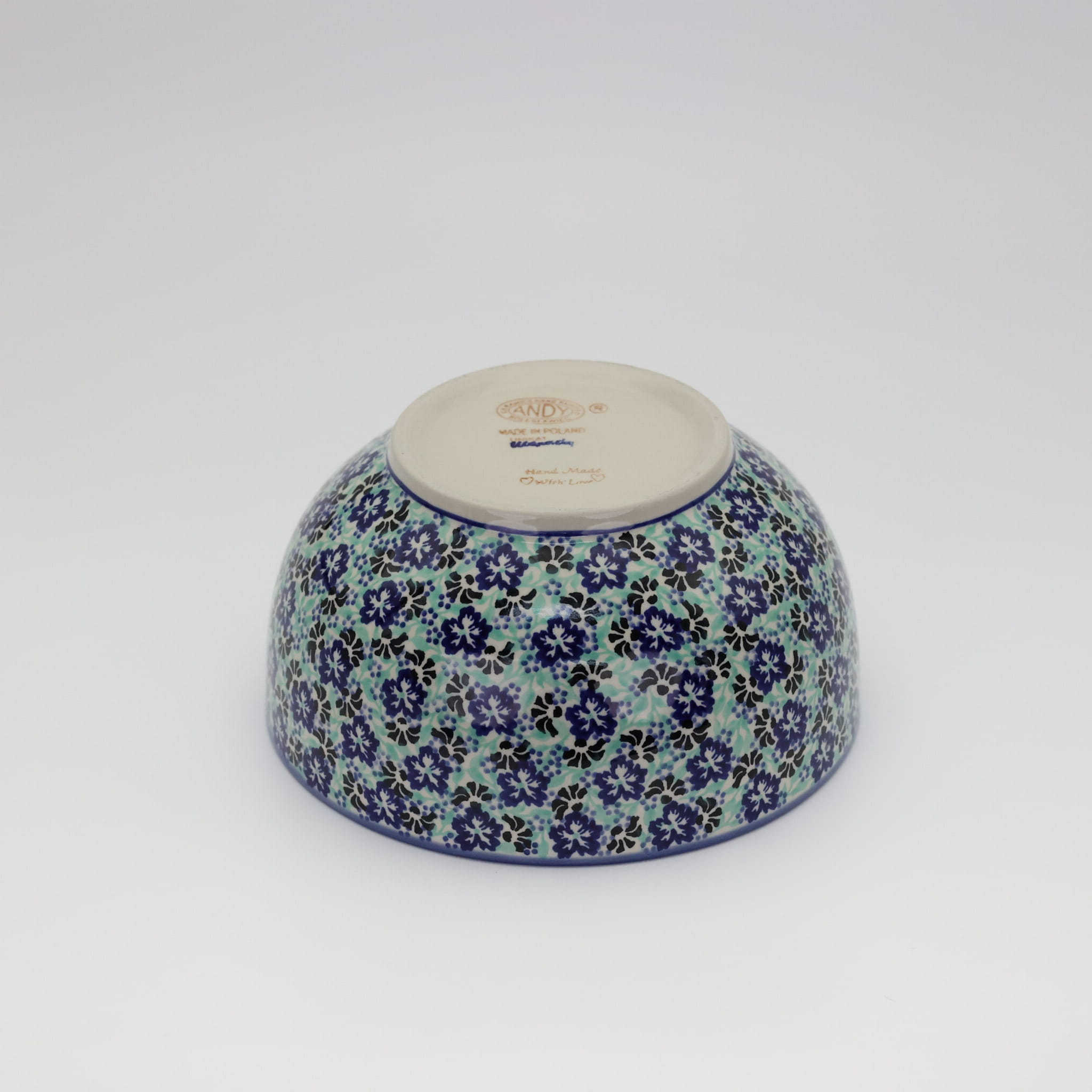 Oryginalny produkt ceramiki bolesławieckiej - miska ceramiczna z pięknym rantem zewnętrznym, salaterka o średnicy 23,5 cm z rantem, idealna do przygotowywania, podawania i przechowywania potraw. Niech Twoja potrawa będzie podana pięknie i smakuje wykwitnie dzięki artystycznym naczyniom ceramiki bolesławieckiej z rodzinnej manufaktury, CERAMIKA ANDY.