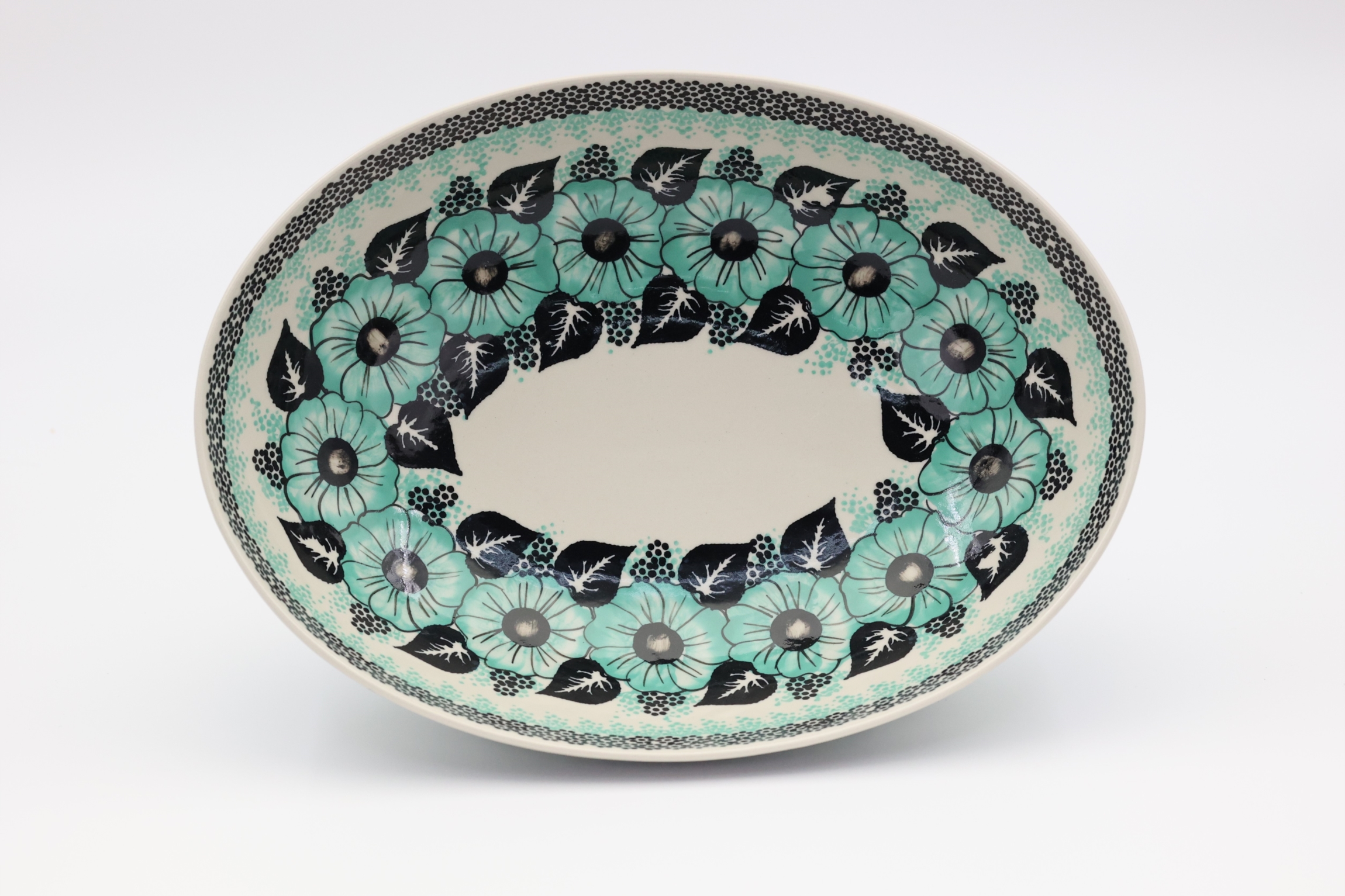 Oryginalny produkt ceramiki bolesławieckiej - ręcznie zdobiona miska MISA JAJKO duża o pojemności 3 litrów, salaterka w kształcie jajka, idealna do podawania i przechowywania potraw.