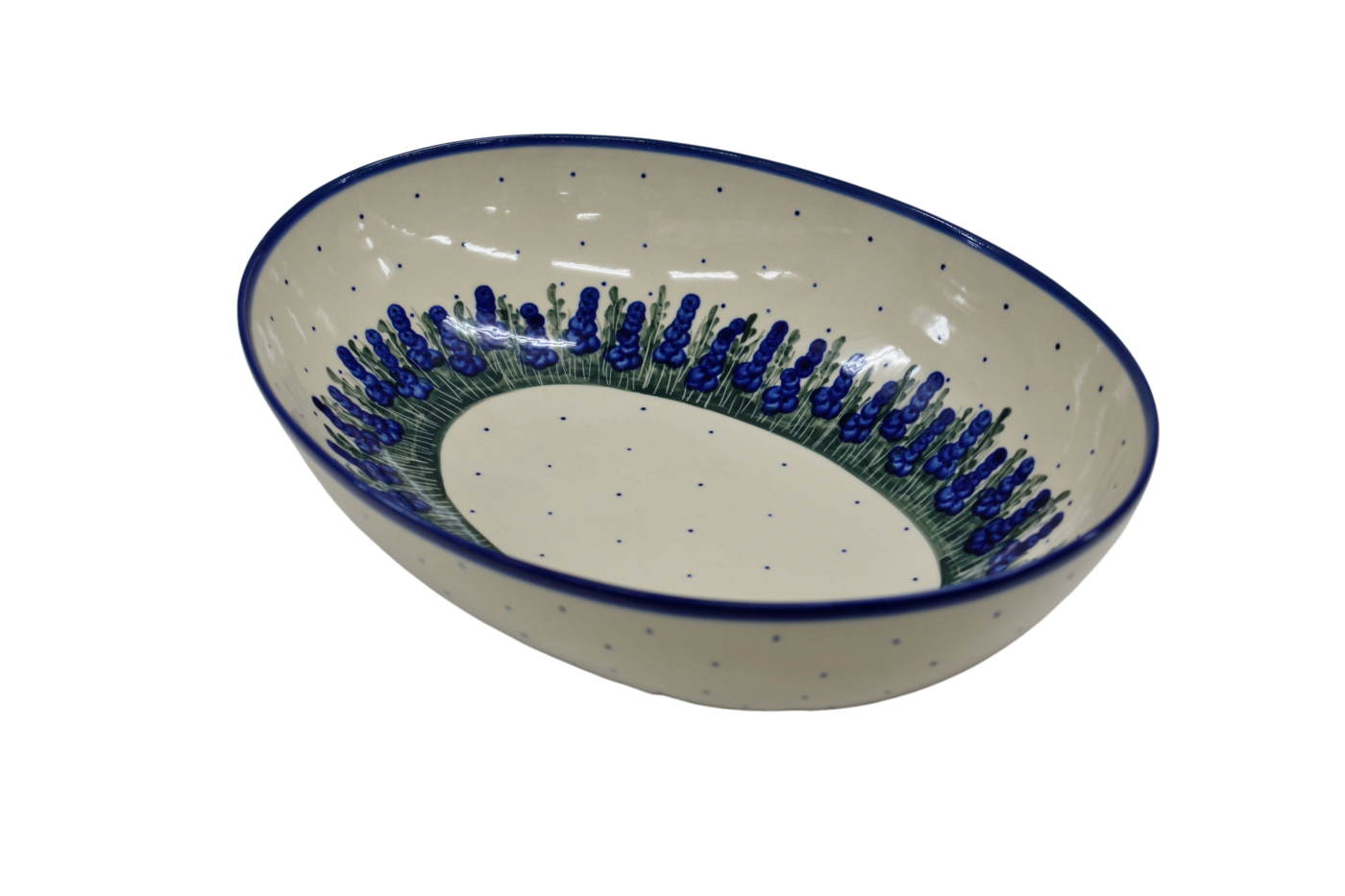 Oryginalny produkt ceramiki bolesławieckiej - ręcznie zdobiona miska MISA JAJKO duża o pojemności 3 litrów, salaterka w kształcie jajka, idealna do podawania i przechowywania potraw.