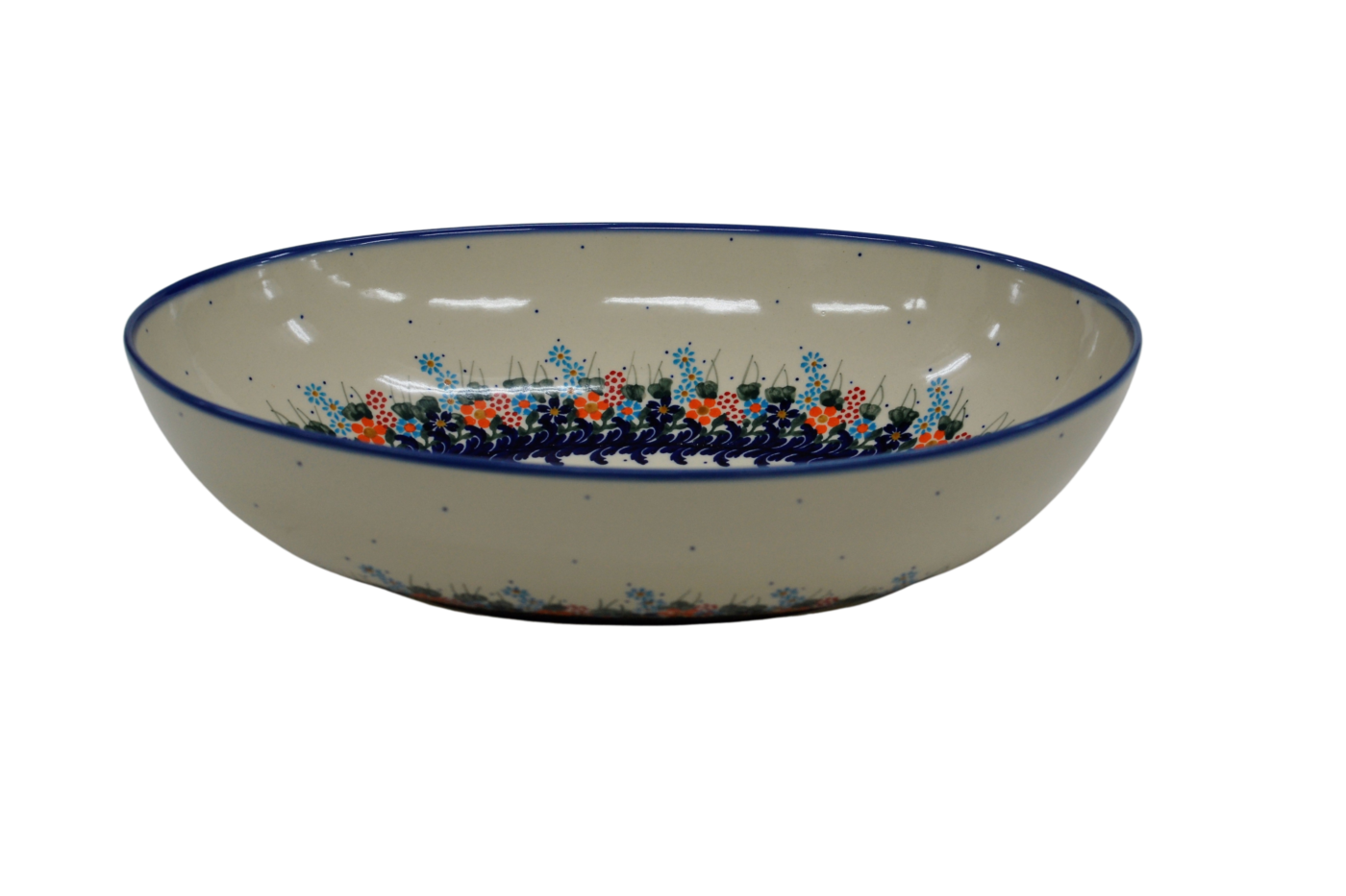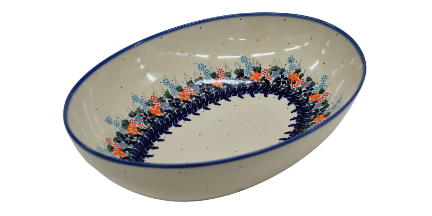 Oryginalny produkt ceramiki bolesławieckiej - ręcznie zdobiona miska MISA JAJKO duża o pojemności 3 litrów, salaterka w kształcie jajka, idealna do podawania i przechowywania potraw.
