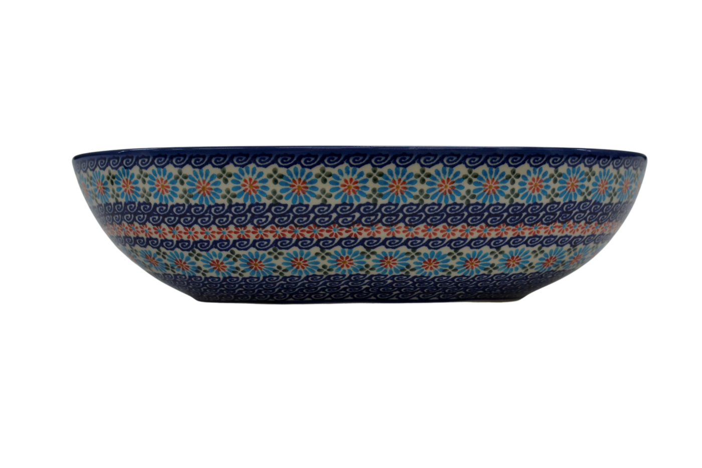 Oryginalny produkt ceramiki bolesławieckiej - ręcznie zdobiona miska MISA JAJKO duża o pojemności 3 litrów, salaterka w kształcie jajka, idealna do podawania i przechowywania potraw.