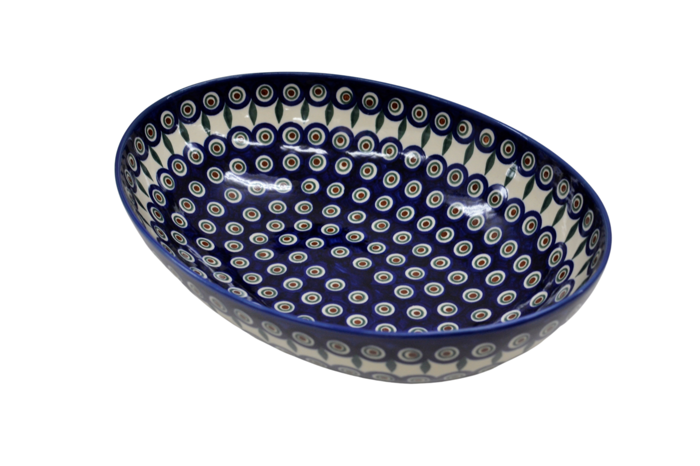 Oryginalny produkt ceramiki bolesławieckiej - ręcznie zdobiona miska MISA JAJKO duża o pojemności 3 litrów, salaterka w kształcie jajka, idealna do podawania i przechowywania potraw.