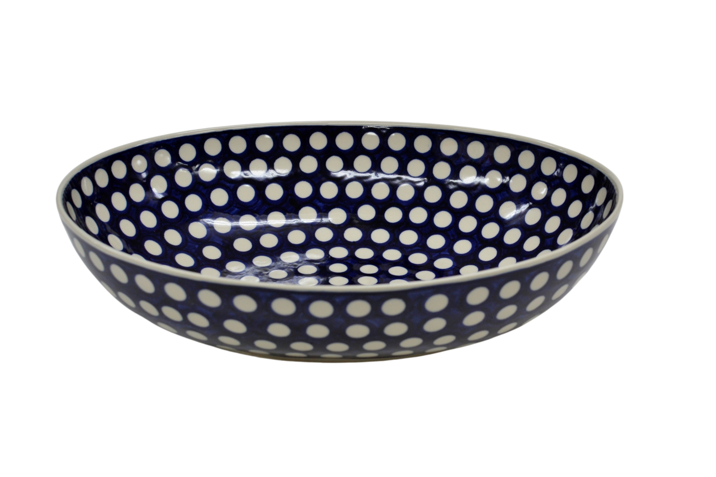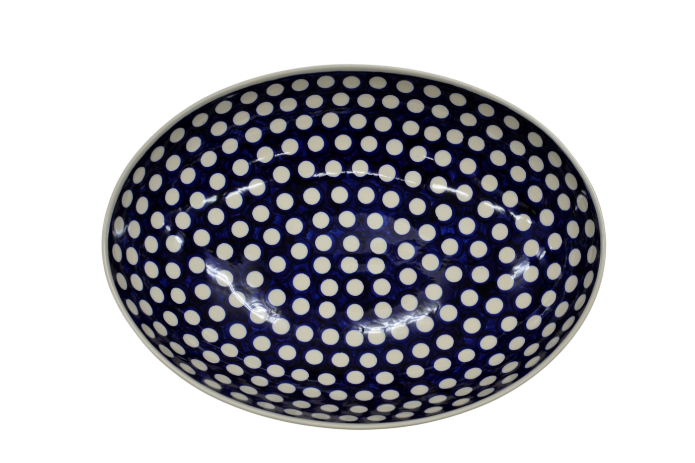 Oryginalny produkt ceramiki bolesławieckiej - ręcznie zdobiona miska MISA JAJKO duża o pojemności 3 litrów, salaterka w kształcie jajka, idealna do podawania i przechowywania potraw.
