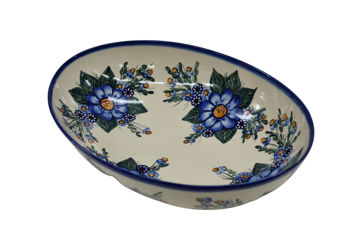 Oryginalny produkt ceramiki bolesławieckiej - ręcznie zdobiona miska MISA JAJKO duża o pojemności 3 litrów, salaterka w kształcie jajka, idealna do podawania i przechowywania potraw.