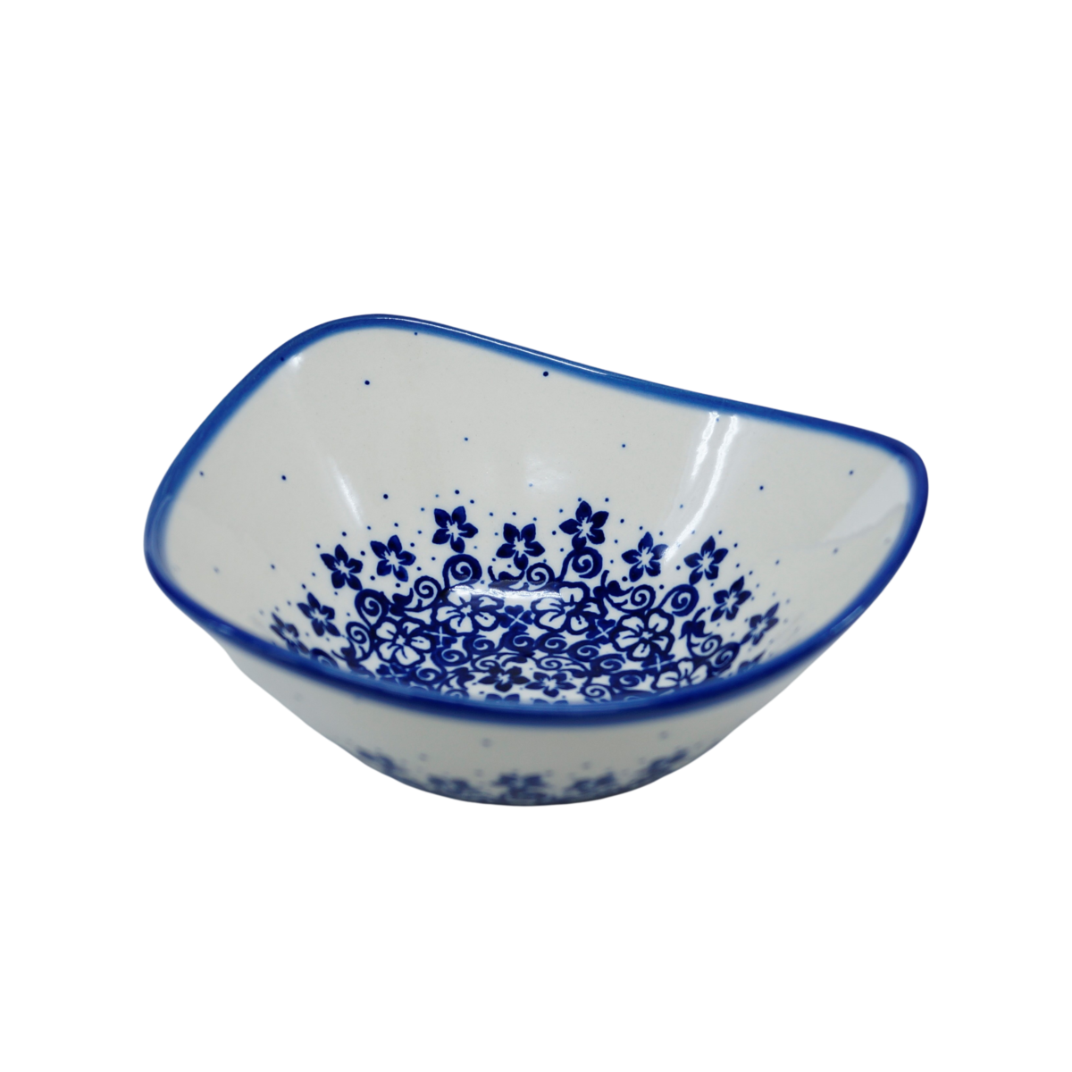Ręcznie zdobiona kamionkowa misa o nie regularnym kształcie, idealna do podawania i przechowywania potraw. Niech Twoja potrawa przygotowana będzie podana pięknie i smakuje wykwitnie dzięki artystycznym naczyniom ceramiki Bolesławieckiej z rodzinnej manufaktury, CERAMIKA ANDY, ręcznie zdobionym podszkliwnie.