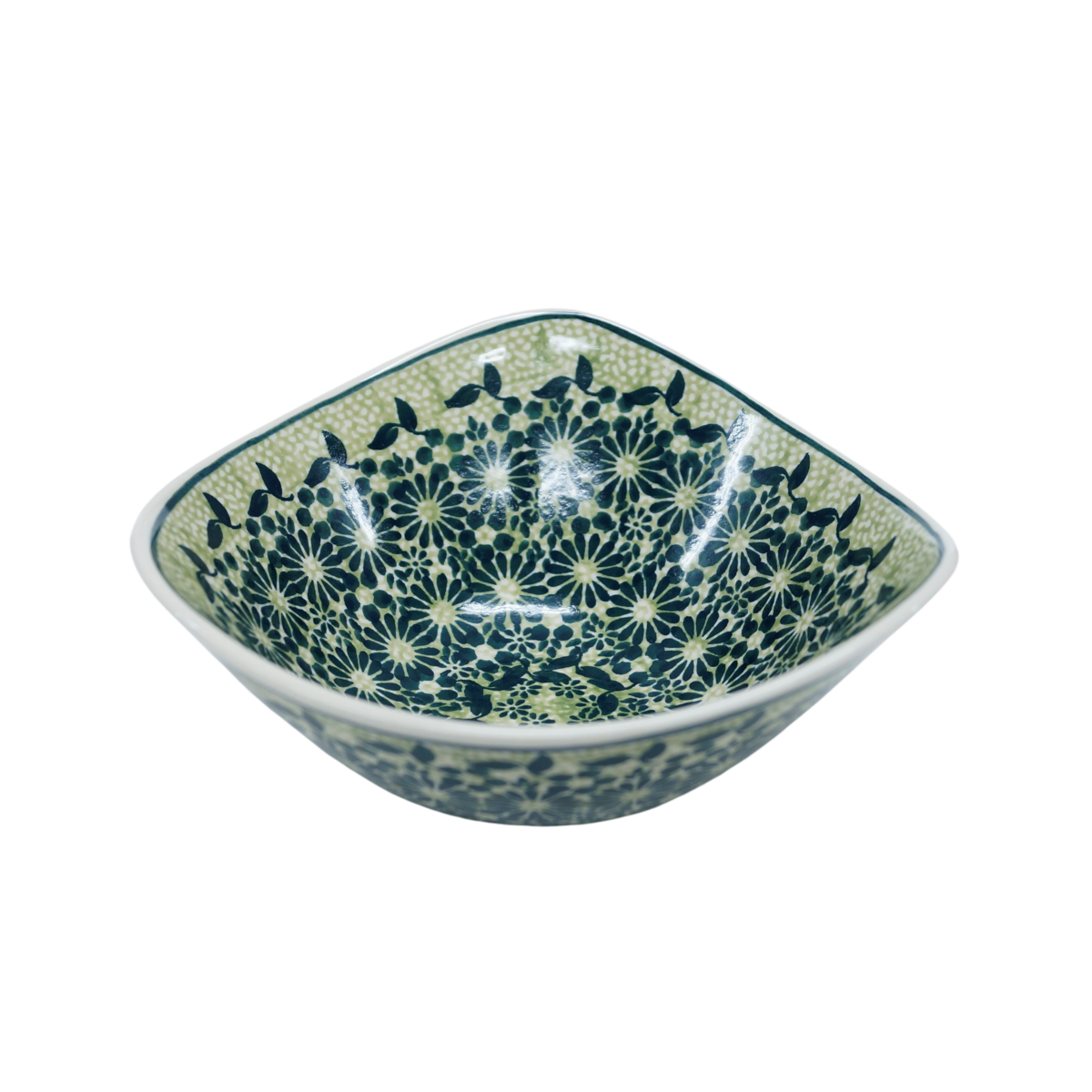 Ręcznie zdobiona kamionkowa misa o nie regularnym kształcie, idealna do podawania i przechowywania potraw. Niech Twoja potrawa przygotowana będzie podana pięknie i smakuje wykwitnie dzięki artystycznym naczyniom ceramiki Bolesławieckiej z rodzinnej manufaktury, CERAMIKA ANDY, ręcznie zdobionym podszkliwnie.