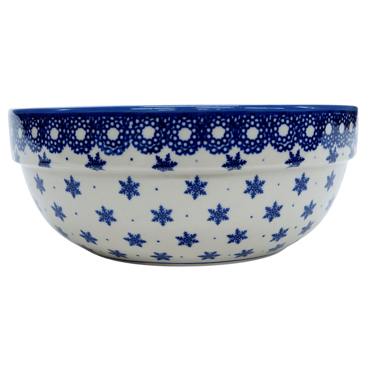 Oryginalny produkt ceramiki bolesławieckiej - miska ceramiczna z pięknym rantem zewnętrznym, salaterka o średnicy 23,3 cm z rantem, idealna do przygotowywania, podawania i przechowywania potraw. Niech Twoja potrawa będzie podana pięknie i smakuje wykwitnie dzięki artystycznym naczyniom ceramiki bolesławieckiej z rodzinnej manufaktury, CERAMIKA ANDY.