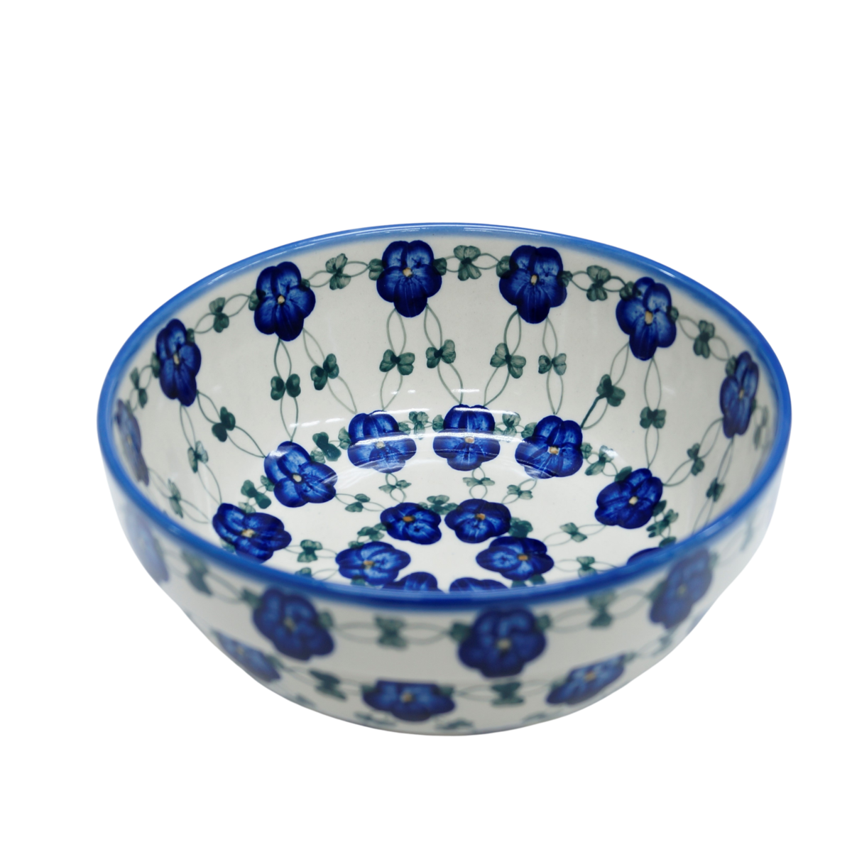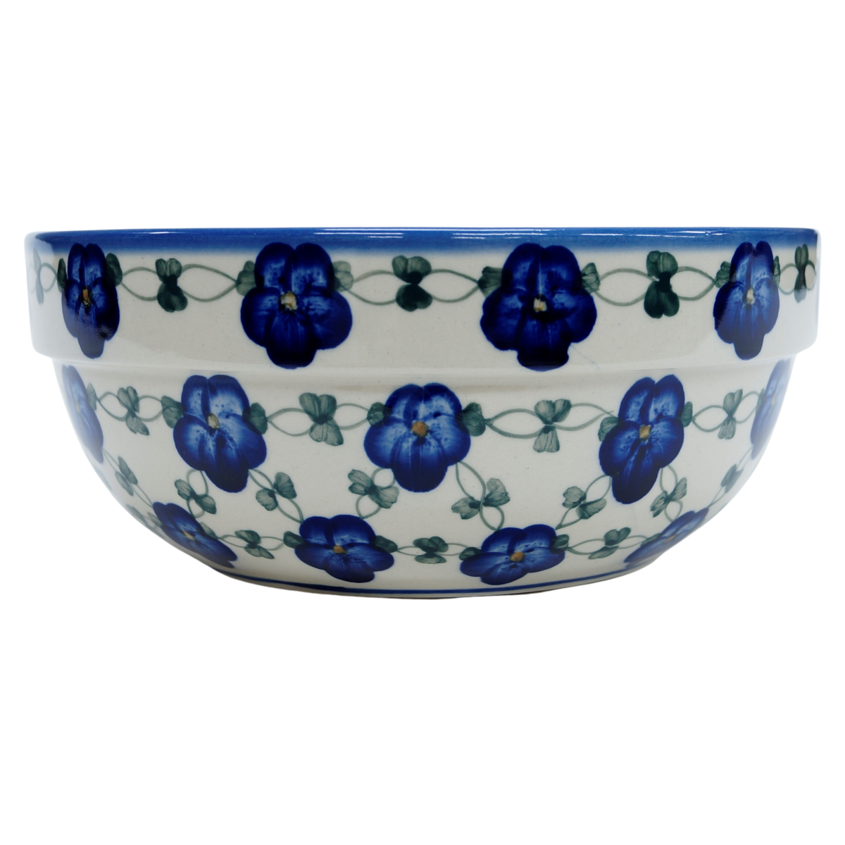 Oryginalny produkt ceramiki bolesławieckiej - miska ceramiczna z pięknym rantem zewnętrznym, salaterka o średnicy 23,3 cm z rantem, idealna do przygotowywania, podawania i przechowywania potraw. Niech Twoja potrawa będzie podana pięknie i smakuje wykwitnie dzięki artystycznym naczyniom ceramiki bolesławieckiej z rodzinnej manufaktury, CERAMIKA ANDY.