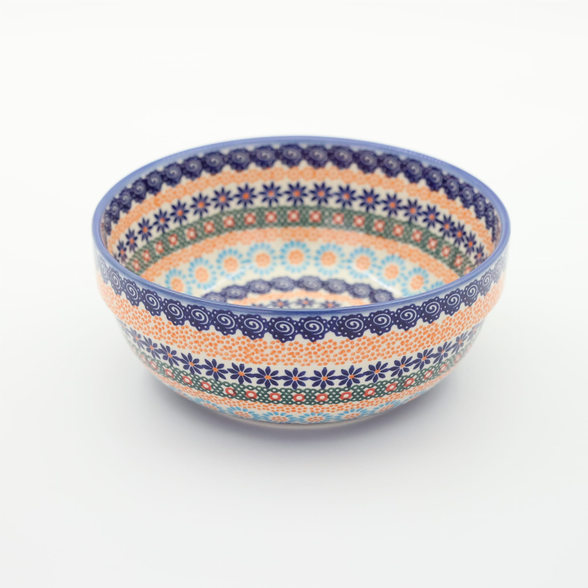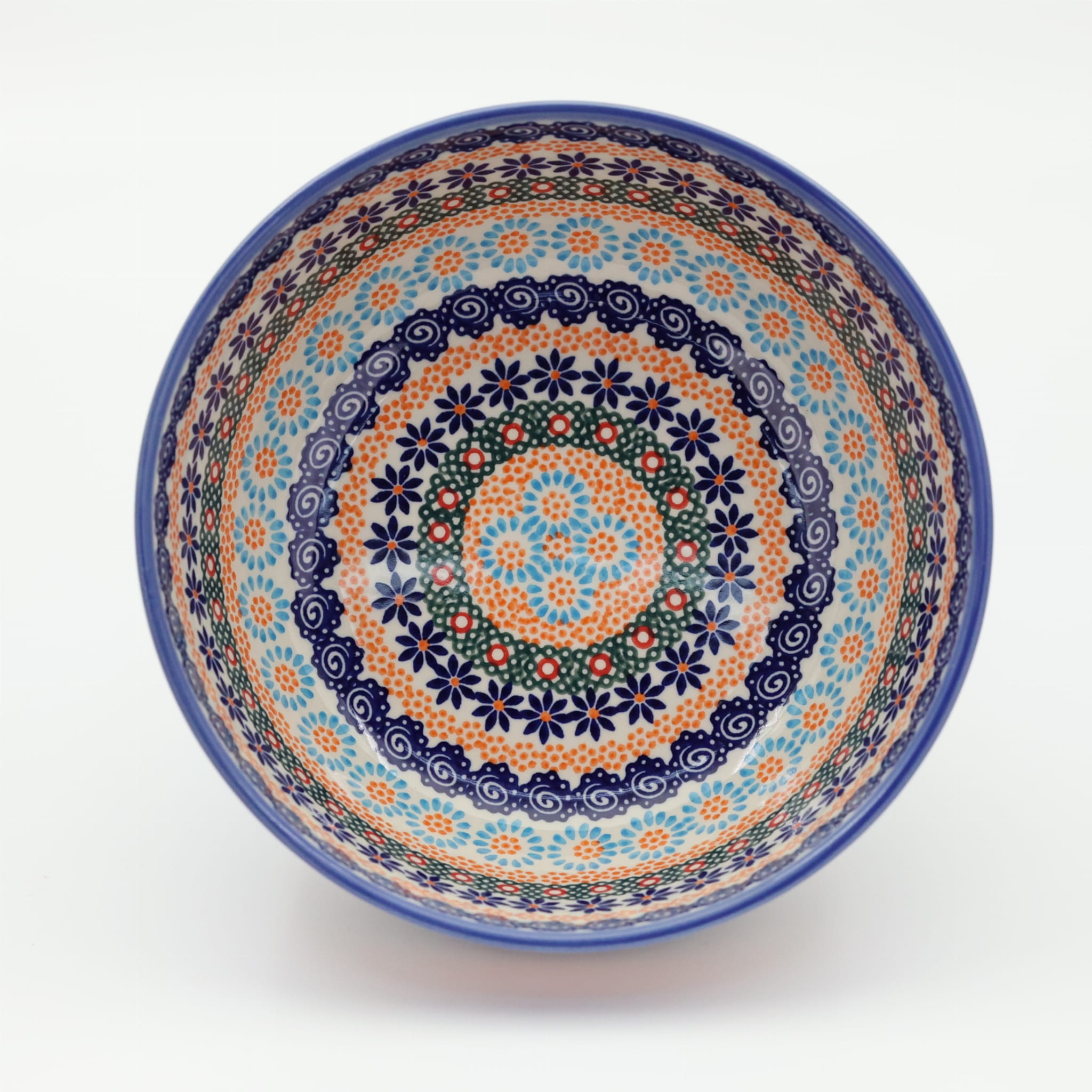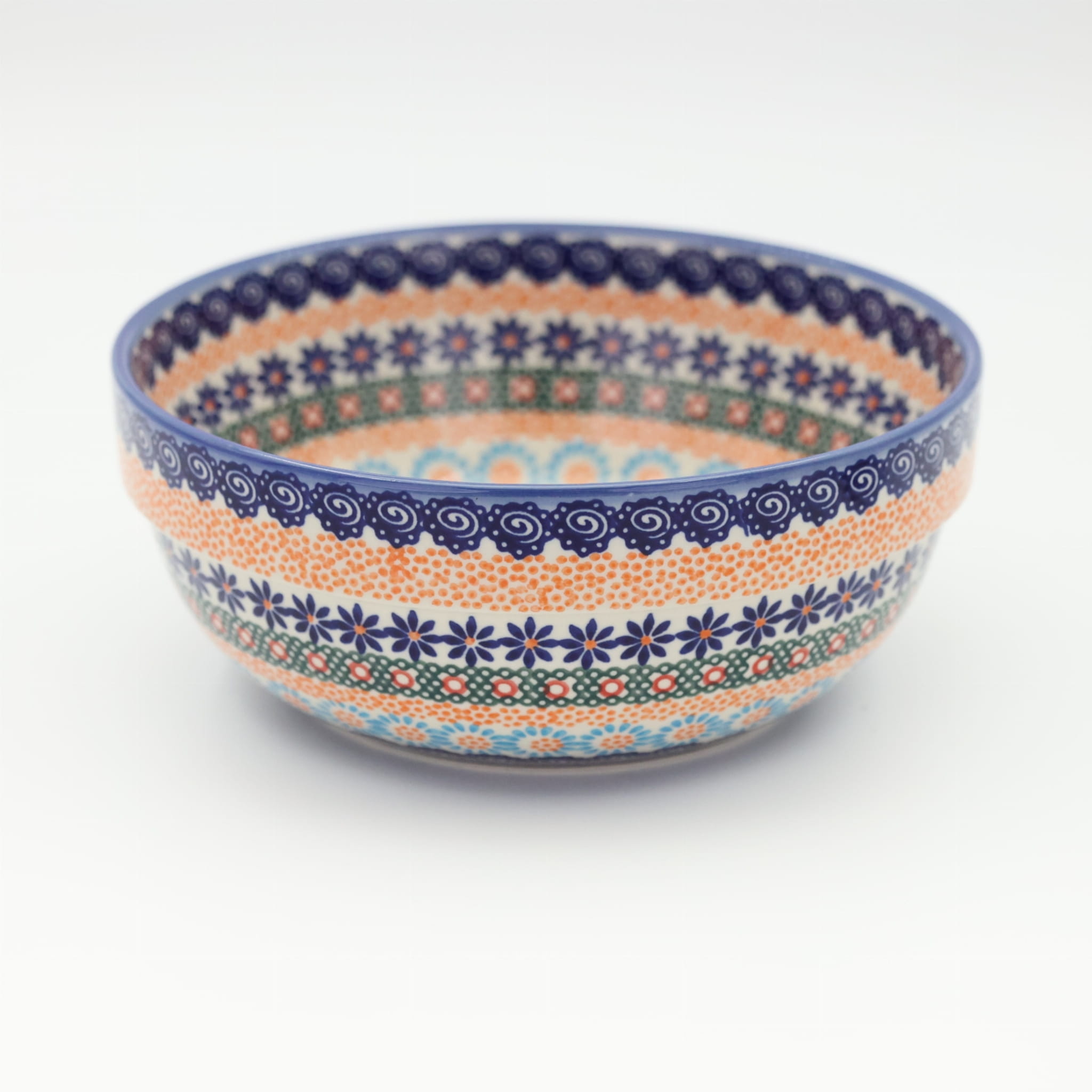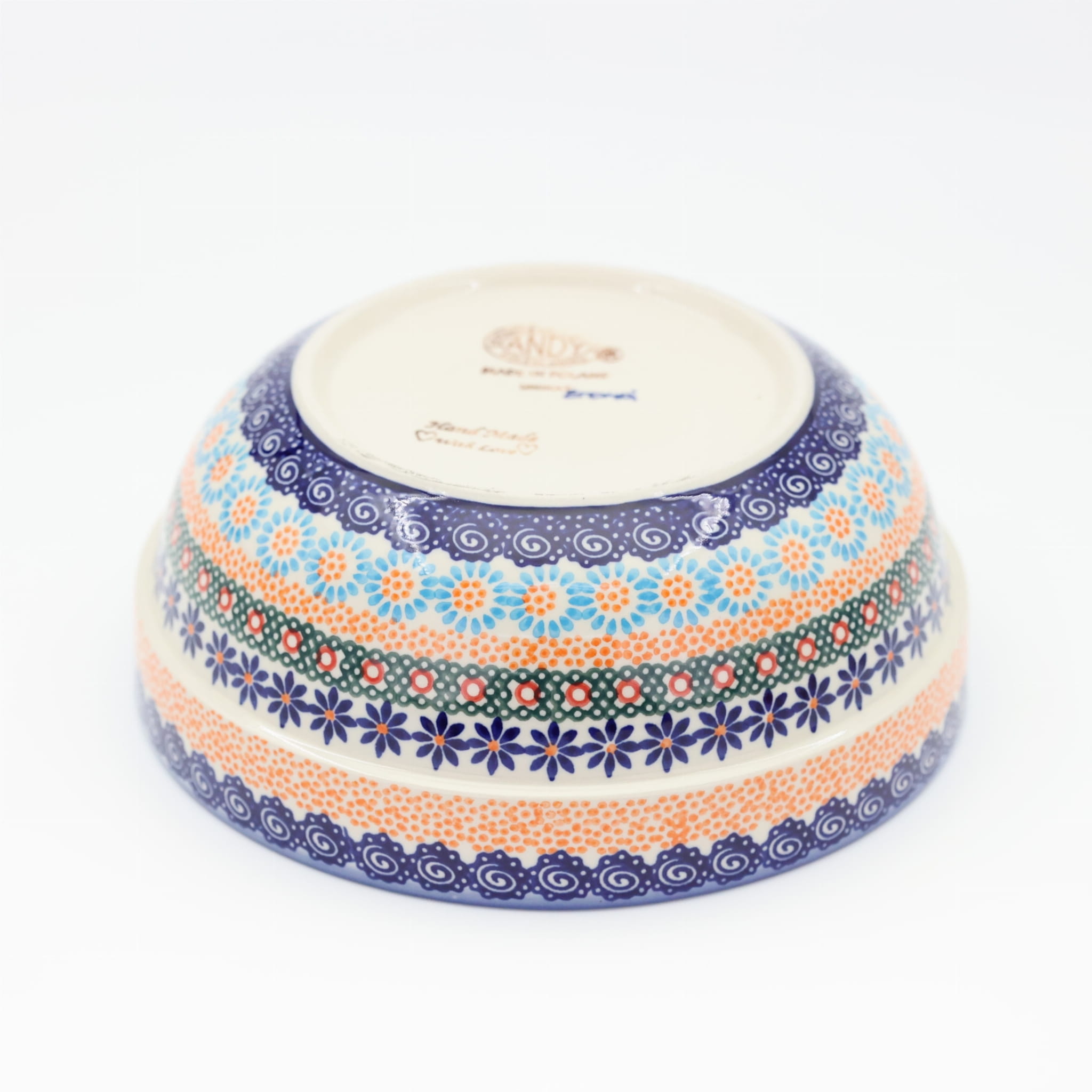 Oryginalny produkt ceramiki bolesławieckiej - miska ceramiczna z pięknym rantem zewnętrznym, salaterka o średnicy 23,3 cm z rantem, idealna do przygotowywania, podawania i przechowywania potraw. Niech Twoja potrawa będzie podana pięknie i smakuje wykwitnie dzięki artystycznym naczyniom ceramiki bolesławieckiej z rodzinnej manufaktury, CERAMIKA ANDY.