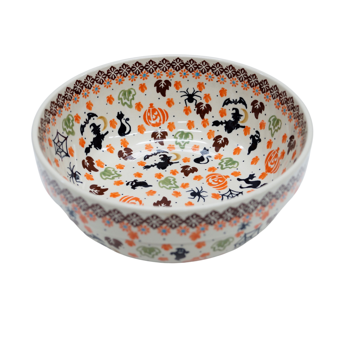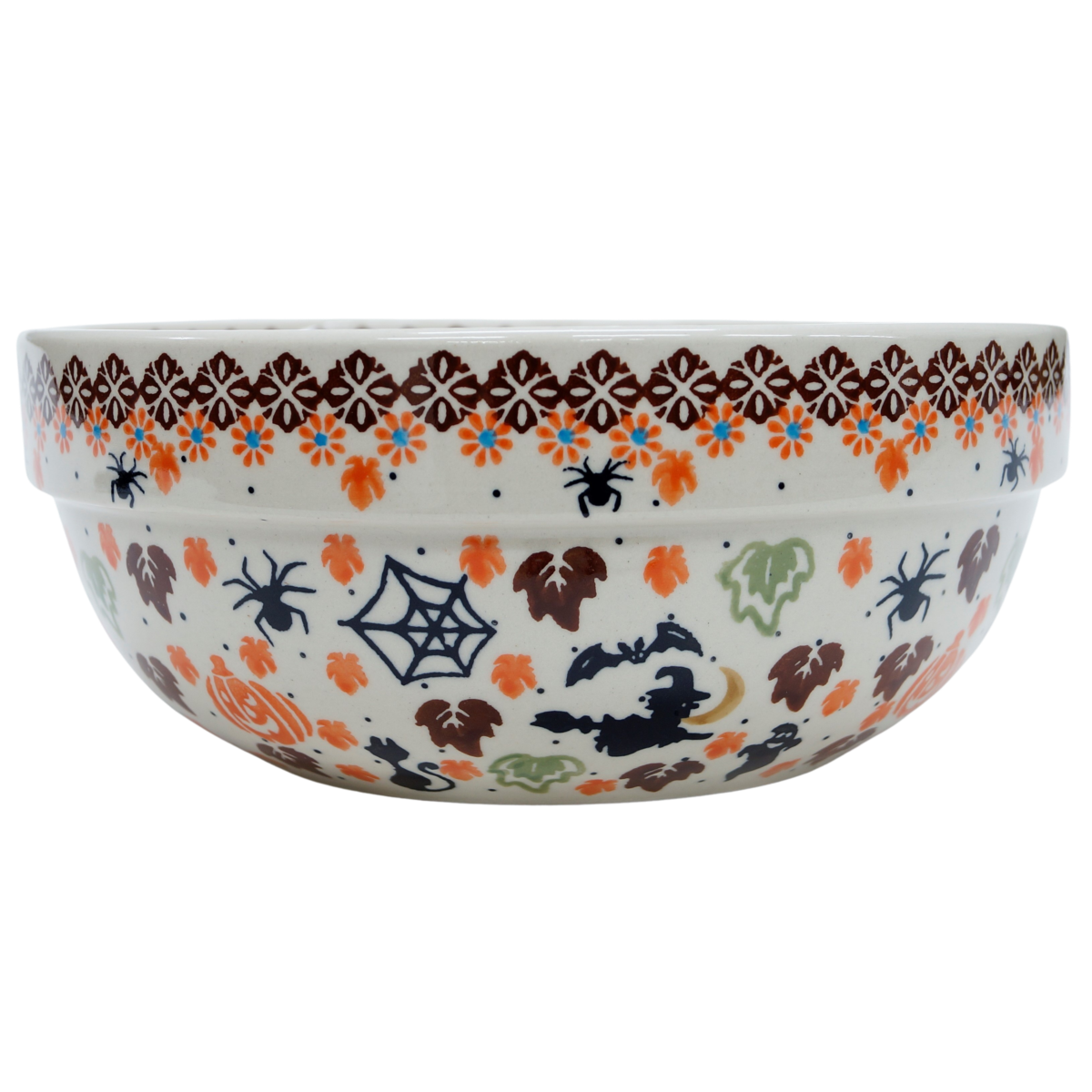 Oryginalny produkt ceramiki bolesławieckiej - miska ceramiczna z pięknym rantem zewnętrznym, salaterka o średnicy 23,3 cm z rantem, idealna do przygotowywania, podawania i przechowywania potraw. Niech Twoja potrawa będzie podana pięknie i smakuje wykwitnie dzięki artystycznym naczyniom ceramiki bolesławieckiej z rodzinnej manufaktury, CERAMIKA ANDY.