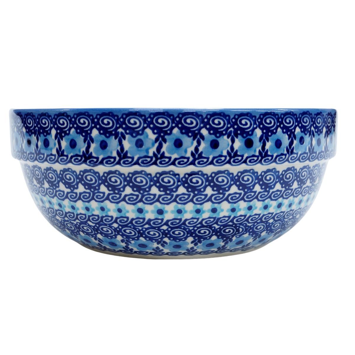 Oryginalny produkt ceramiki bolesławieckiej - miska ceramiczna z pięknym rantem zewnętrznym, salaterka o średnicy 23,3 cm z rantem, idealna do przygotowywania, podawania i przechowywania potraw. Niech Twoja potrawa będzie podana pięknie i smakuje wykwitnie dzięki artystycznym naczyniom ceramiki bolesławieckiej z rodzinnej manufaktury, CERAMIKA ANDY.