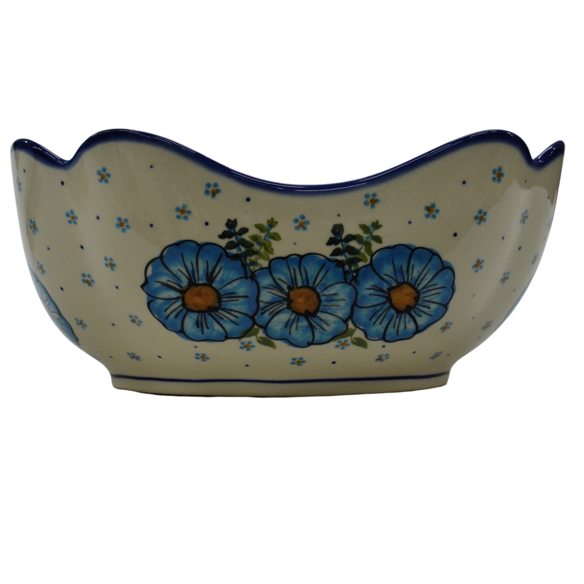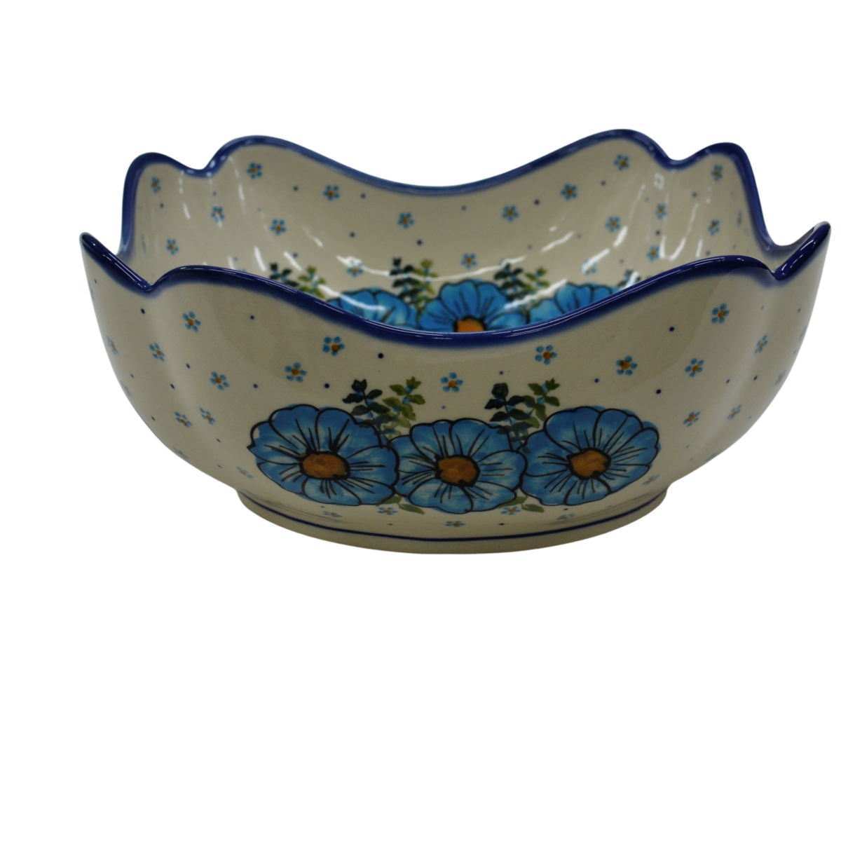 Oryginalny produkt ceramiki bolesławieckiej - ręcznie zdobiona, bolesławiecka miska ceramiczna w kształcie kwiatu tulipana o pojemności aż 2,5 litra, idealna do podawania i przechowywania potraw.